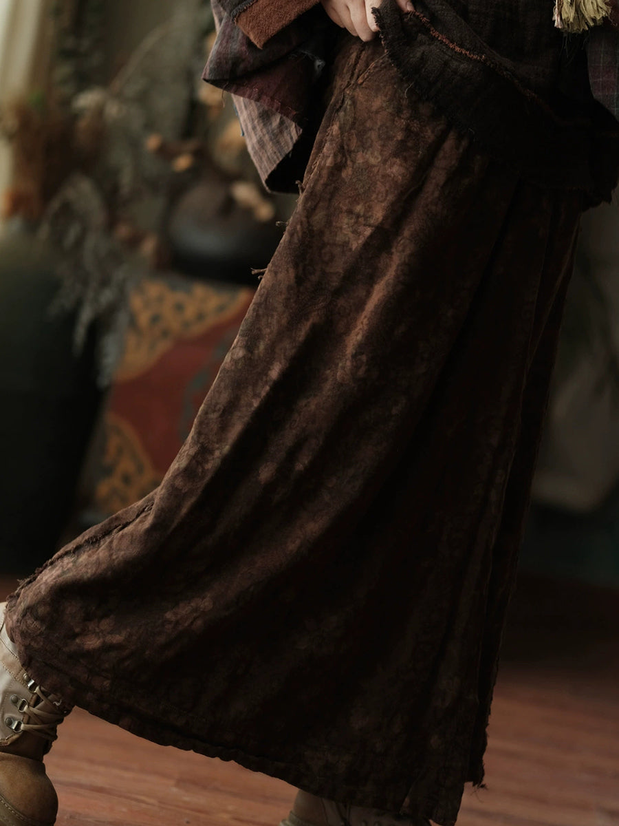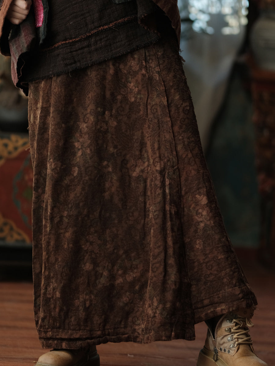 Jupe droite en coton à fleurs rétro automne pour femme