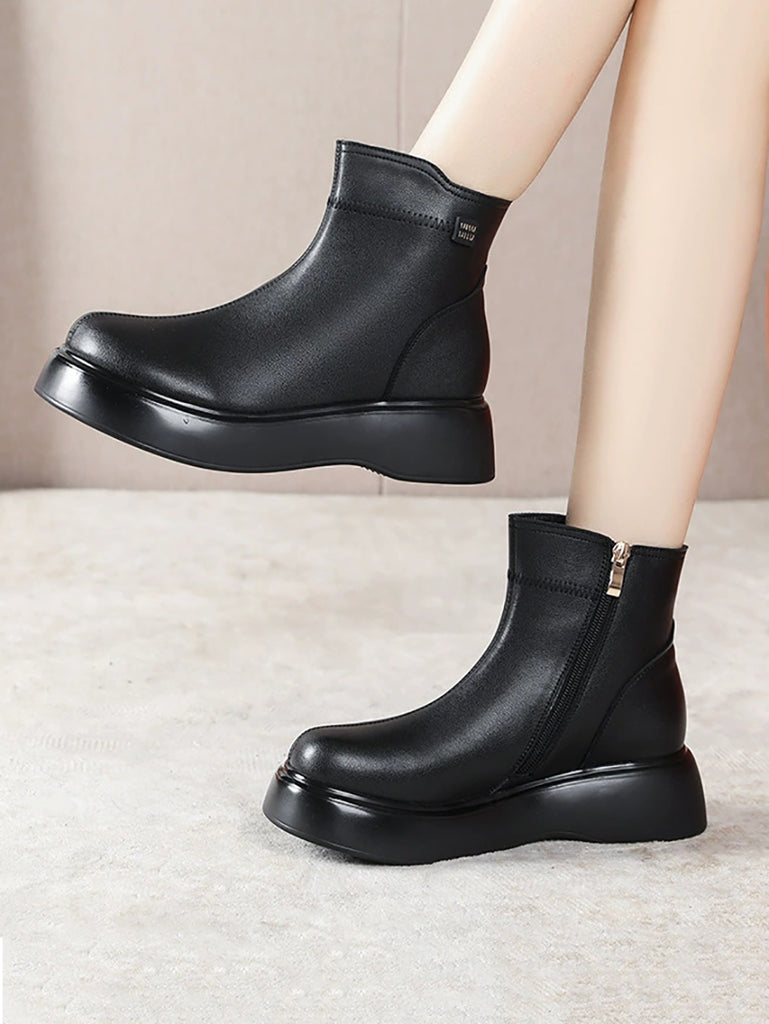 Bottines à plateforme décontractées pour femmes, unies et à empiècements de couleur unie