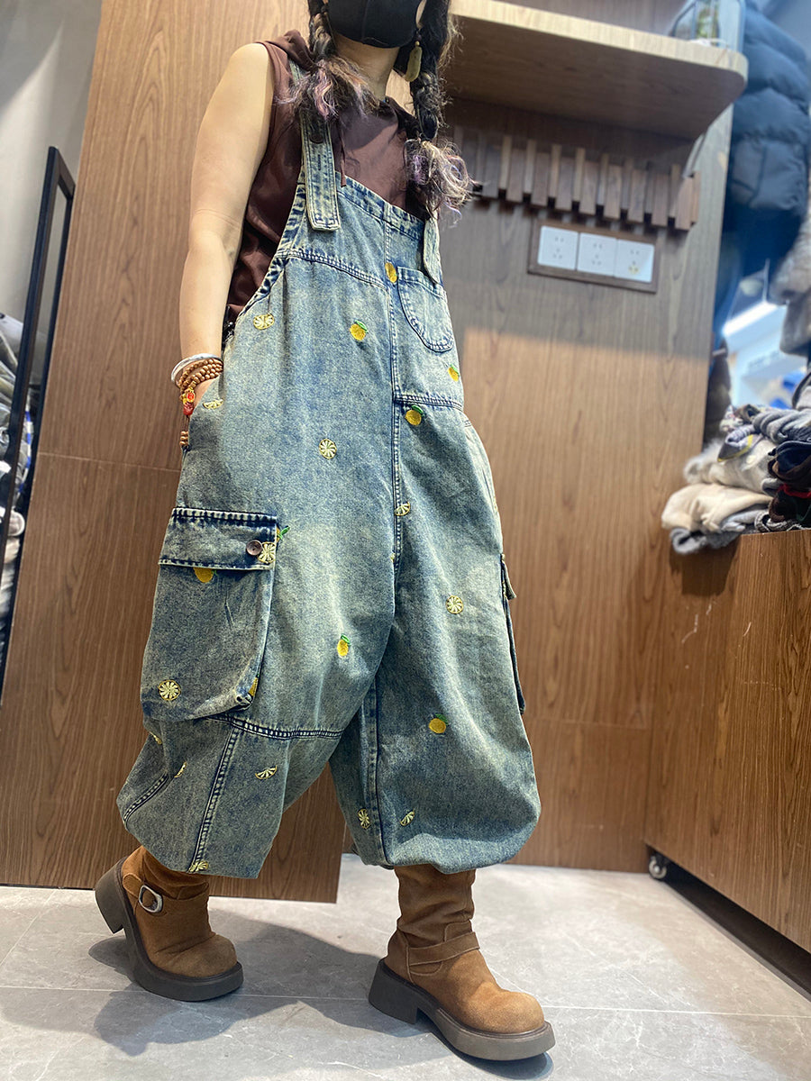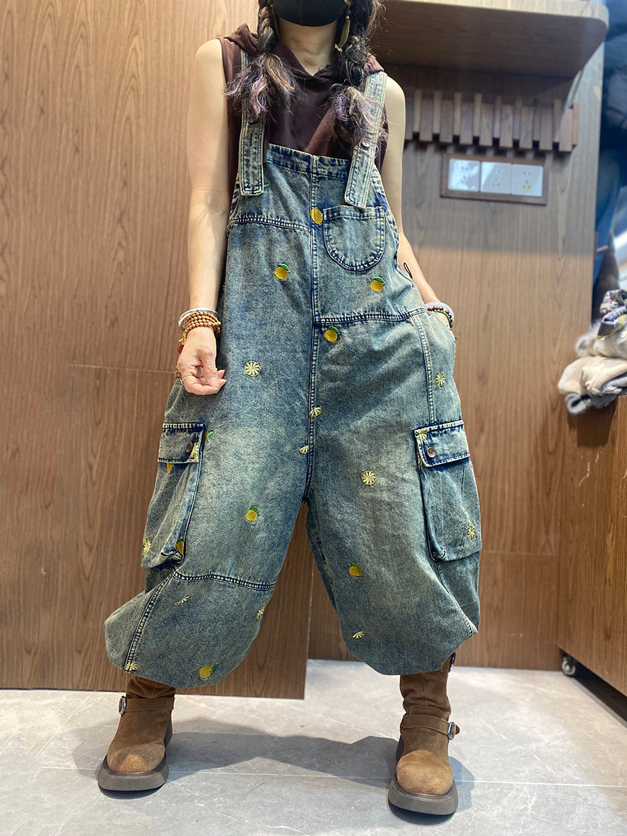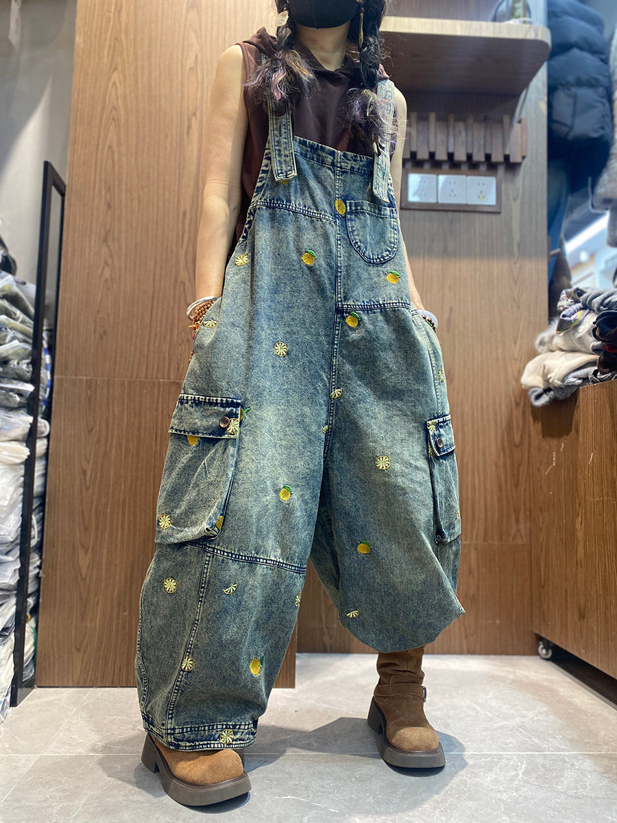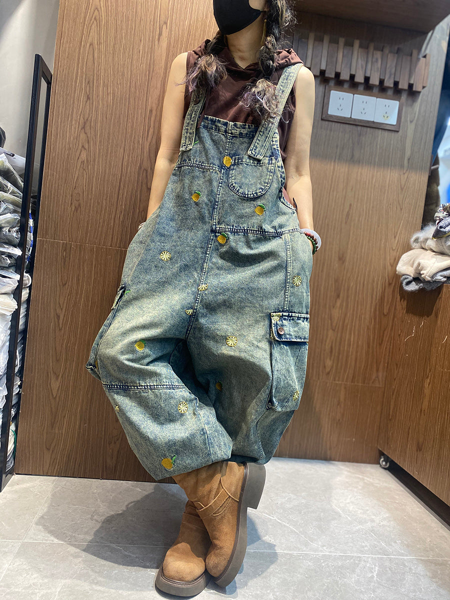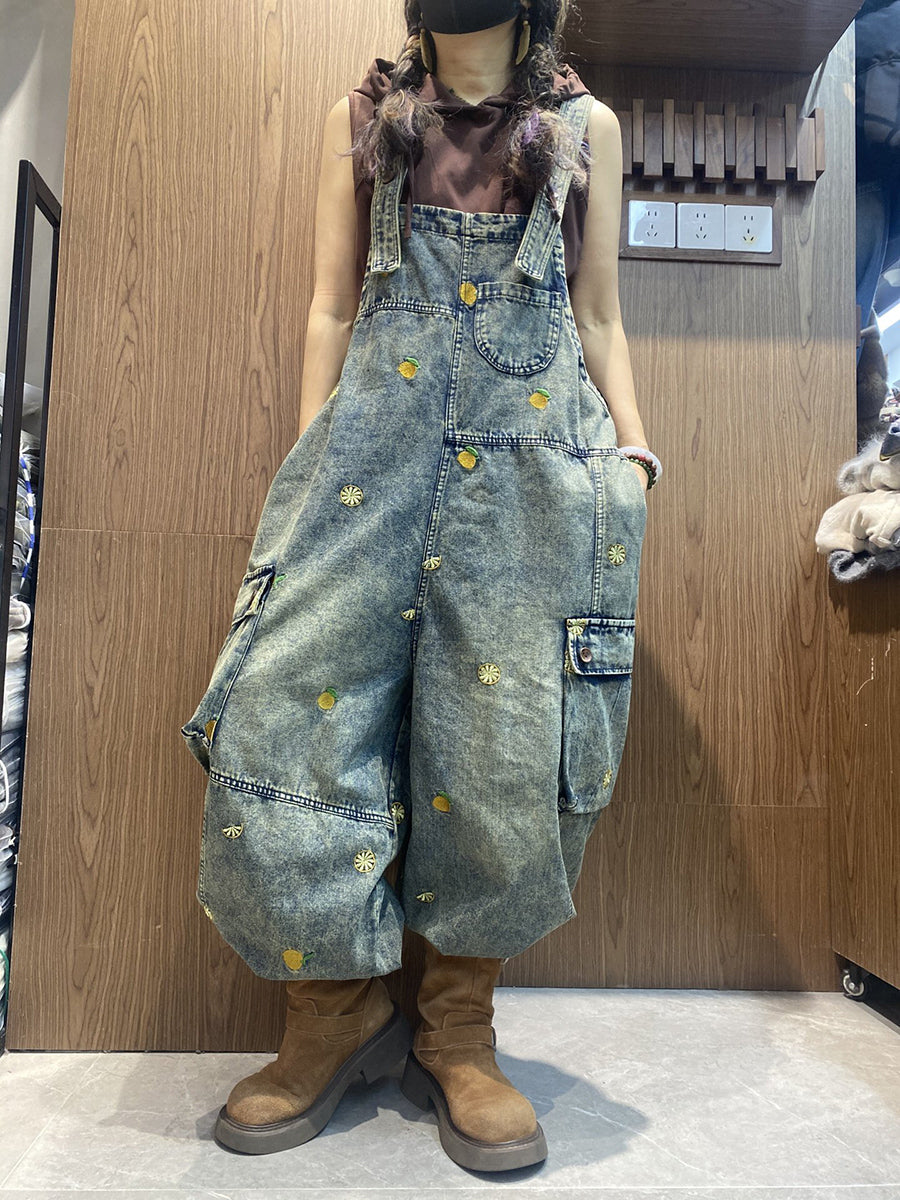 Combinaisons en jean amples brodées vintage pour femmes
