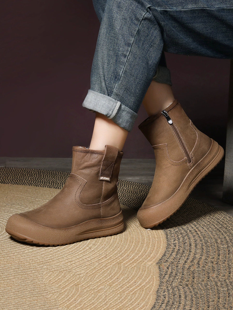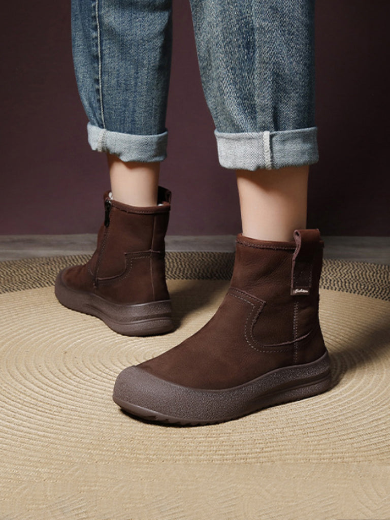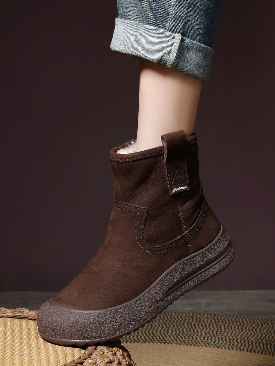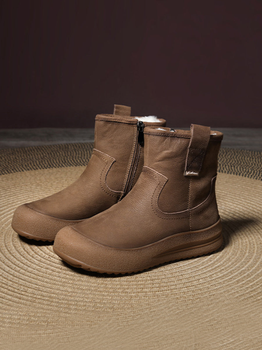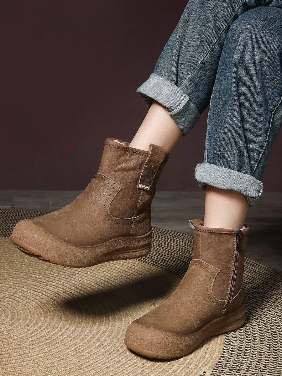Bottes d'hiver vintage pour femmes en cuir doublées polaire