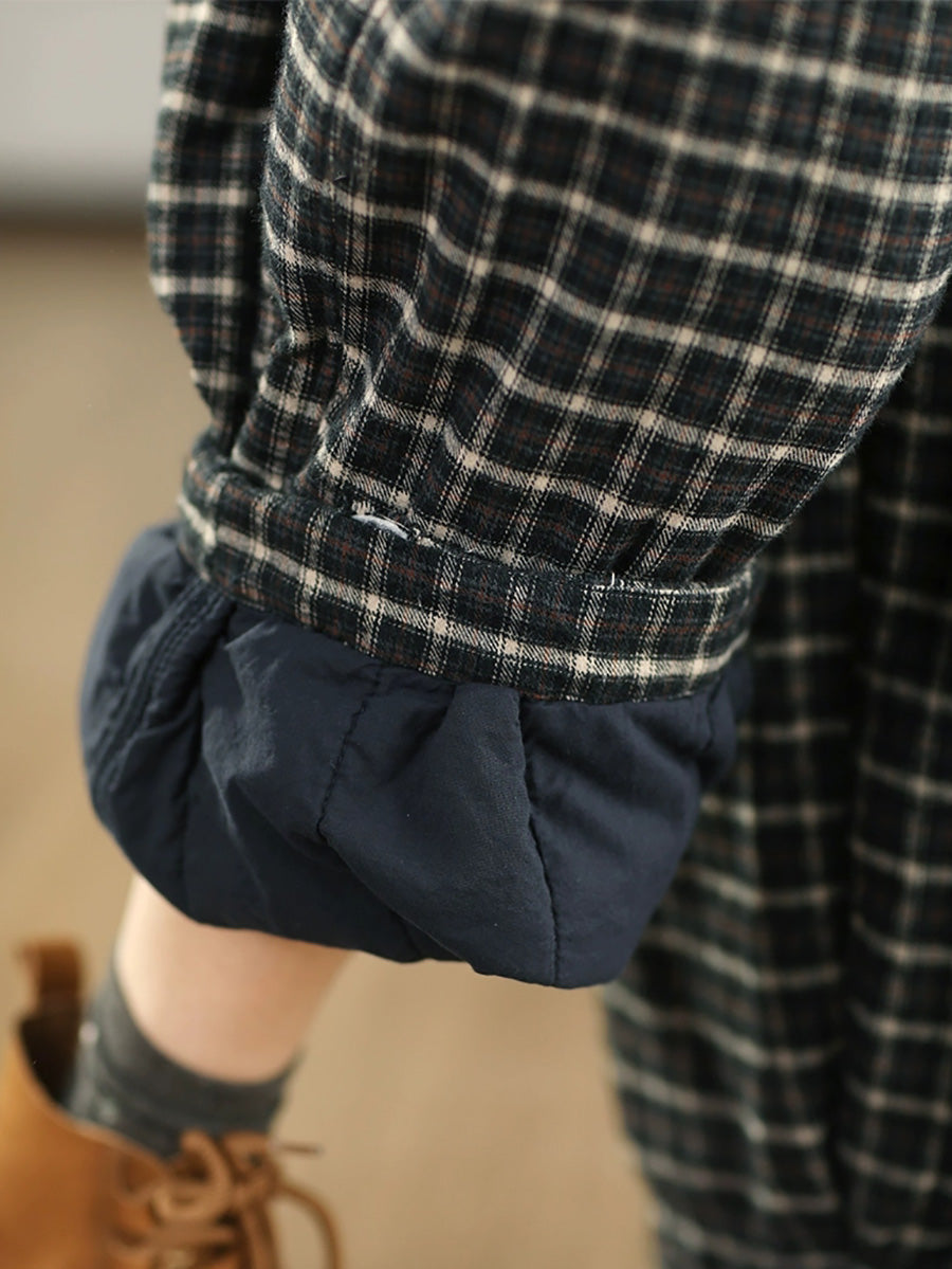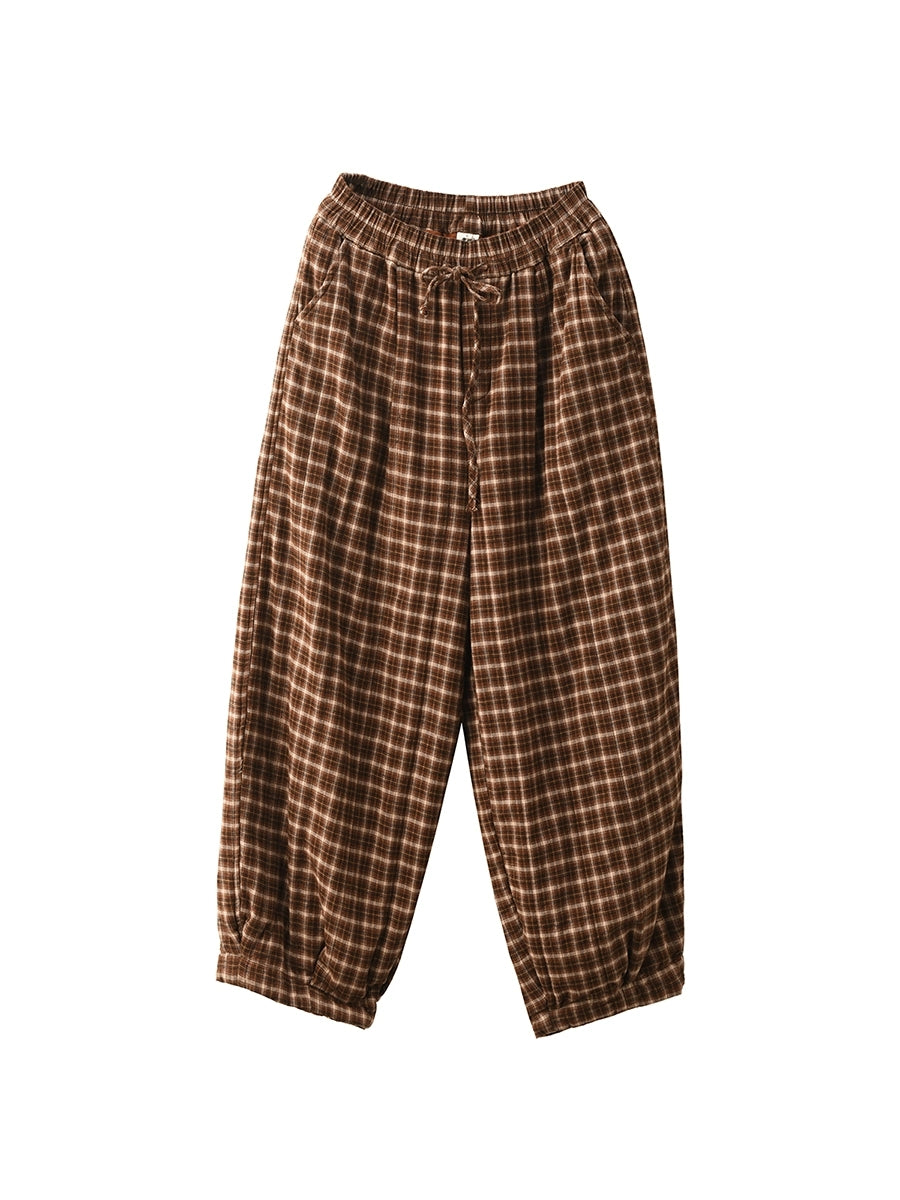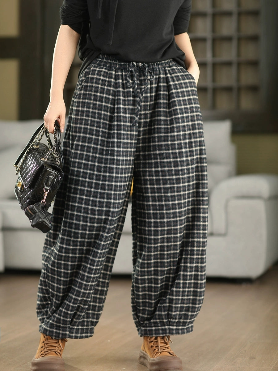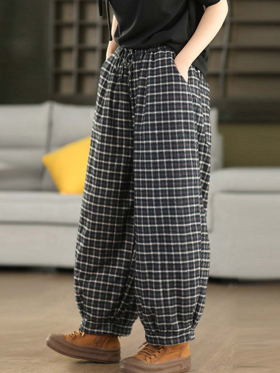 Pantalon harem rembourré à carreaux rétro hiver pour femme, 100 % coton