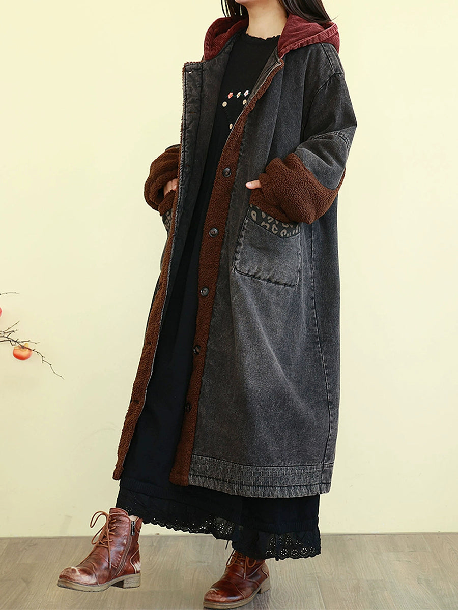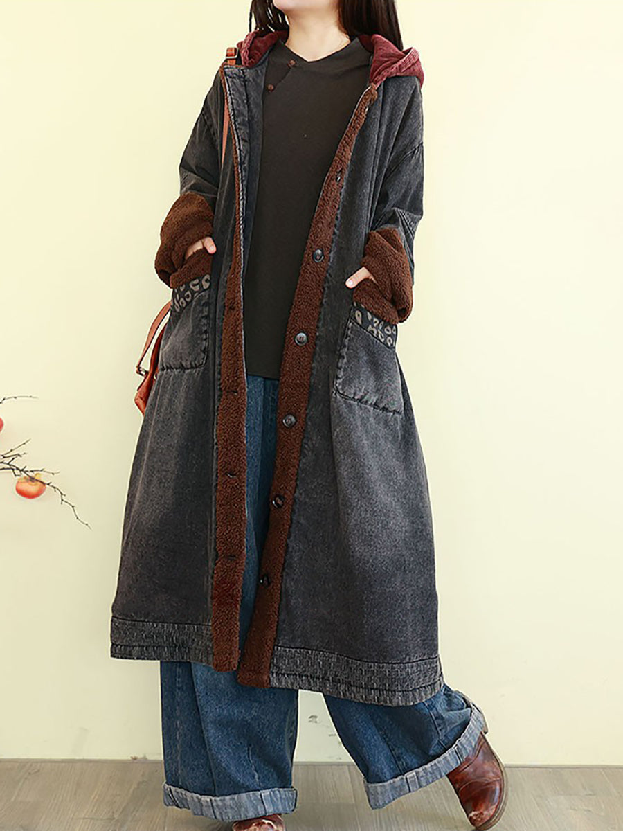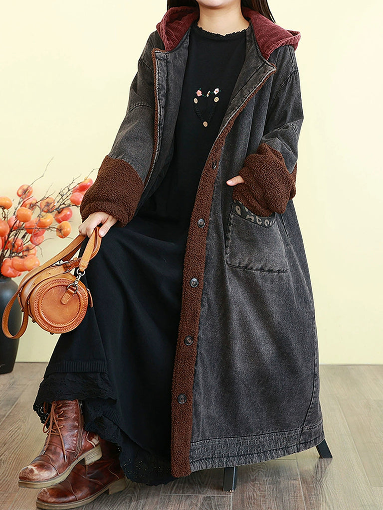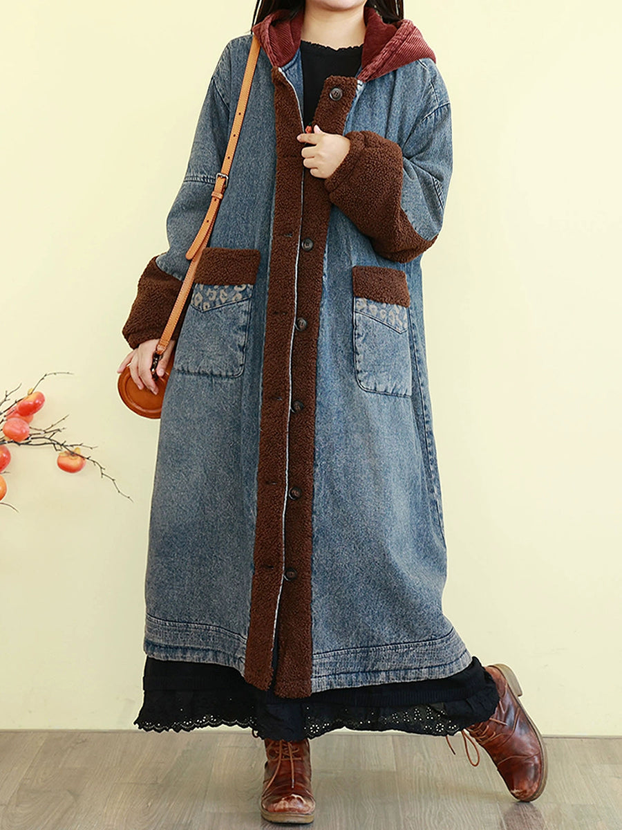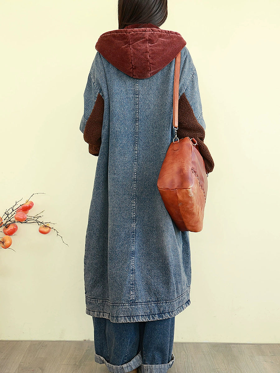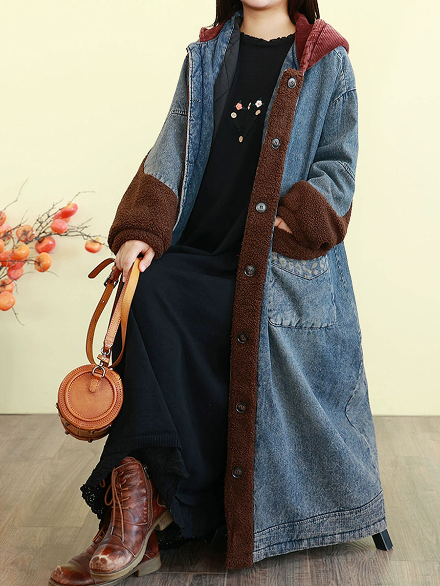 Manteau d'hiver vintage en denim à empiècements et matelassé pour femme