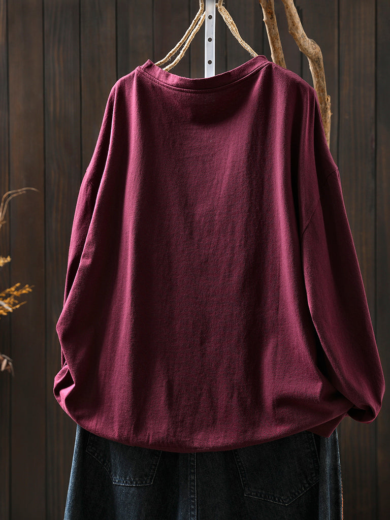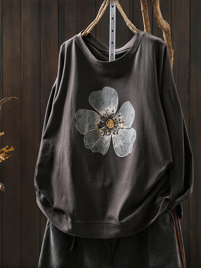 Chemisier en coton à col rond et motif floral artistique pour femme