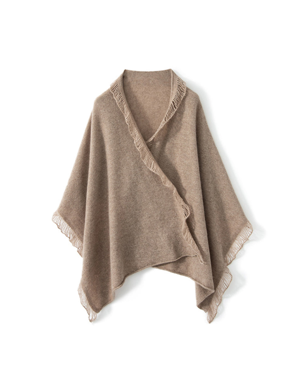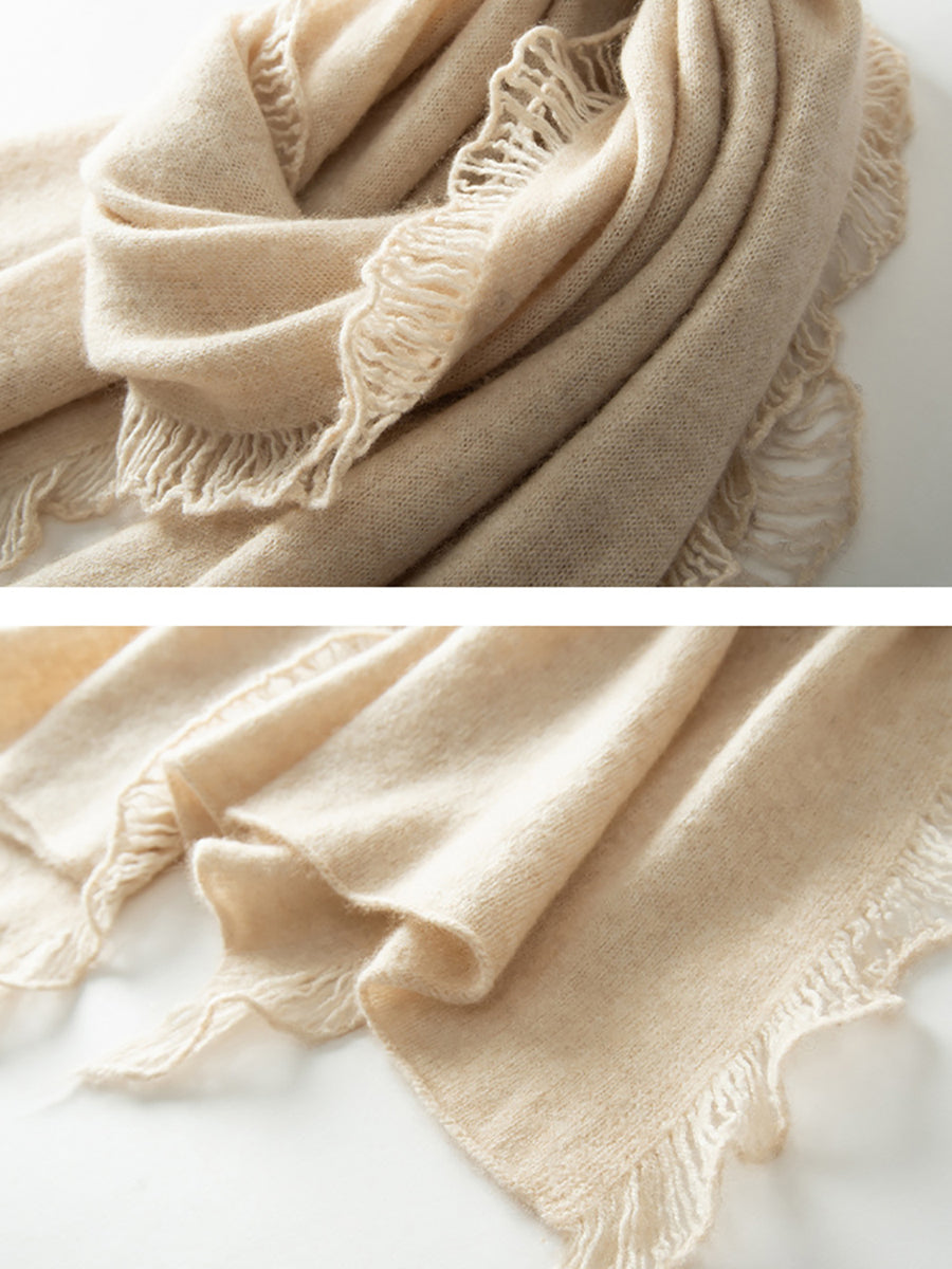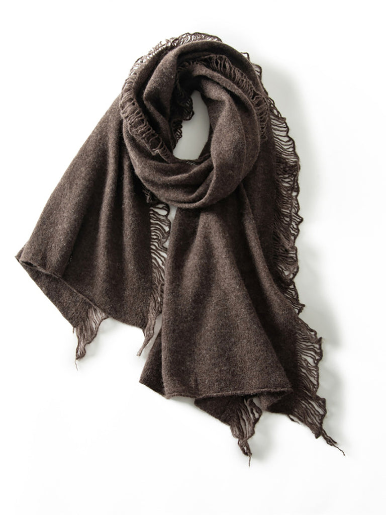 Écharpe à pampilles solide en cachemire chaud vintage pour femmes