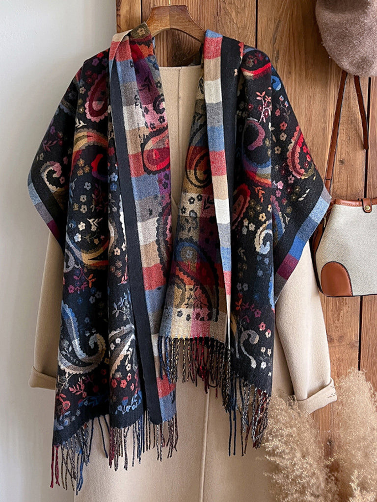 Cape châle à capuche ethnique d'automne pour garder au chaud