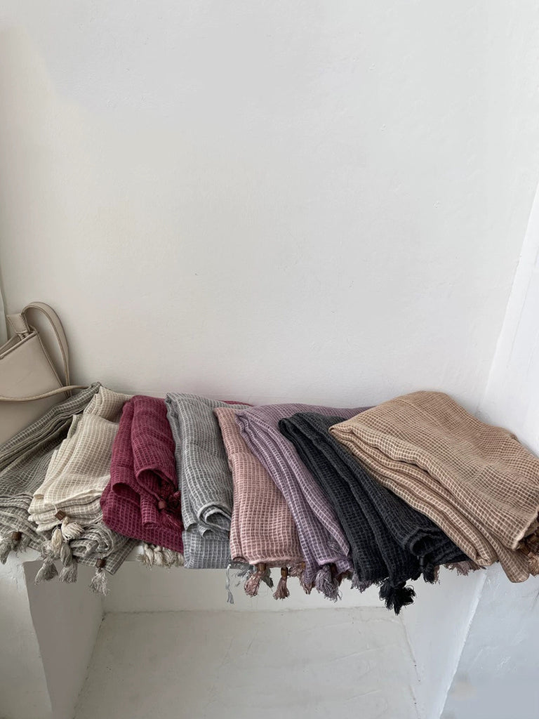 Écharpe douce à pampilles en coton à rayures artistiques de printemps