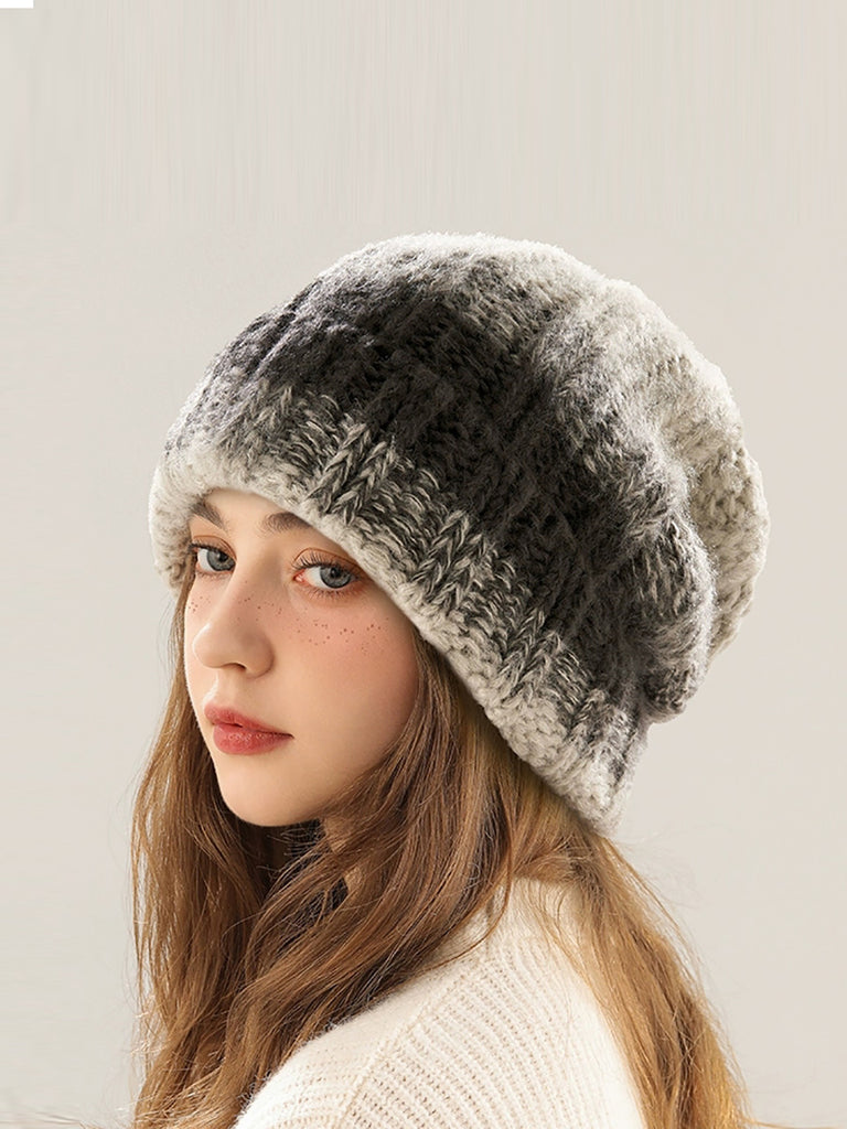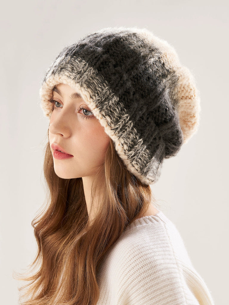 Bonnet tricoté chaud d'hiver de couleur pure pour femme