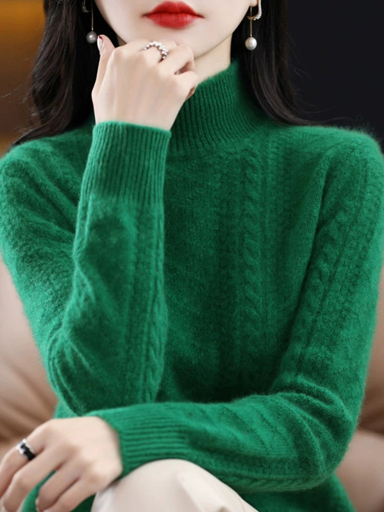Pull col roulé mi-long en laine de couleur pure pour femme, collection automne