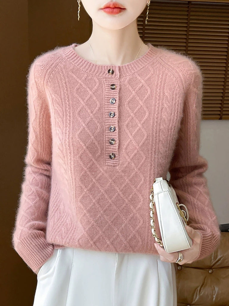 Pull col rond en laine à losanges vintage pour femme, collection automne