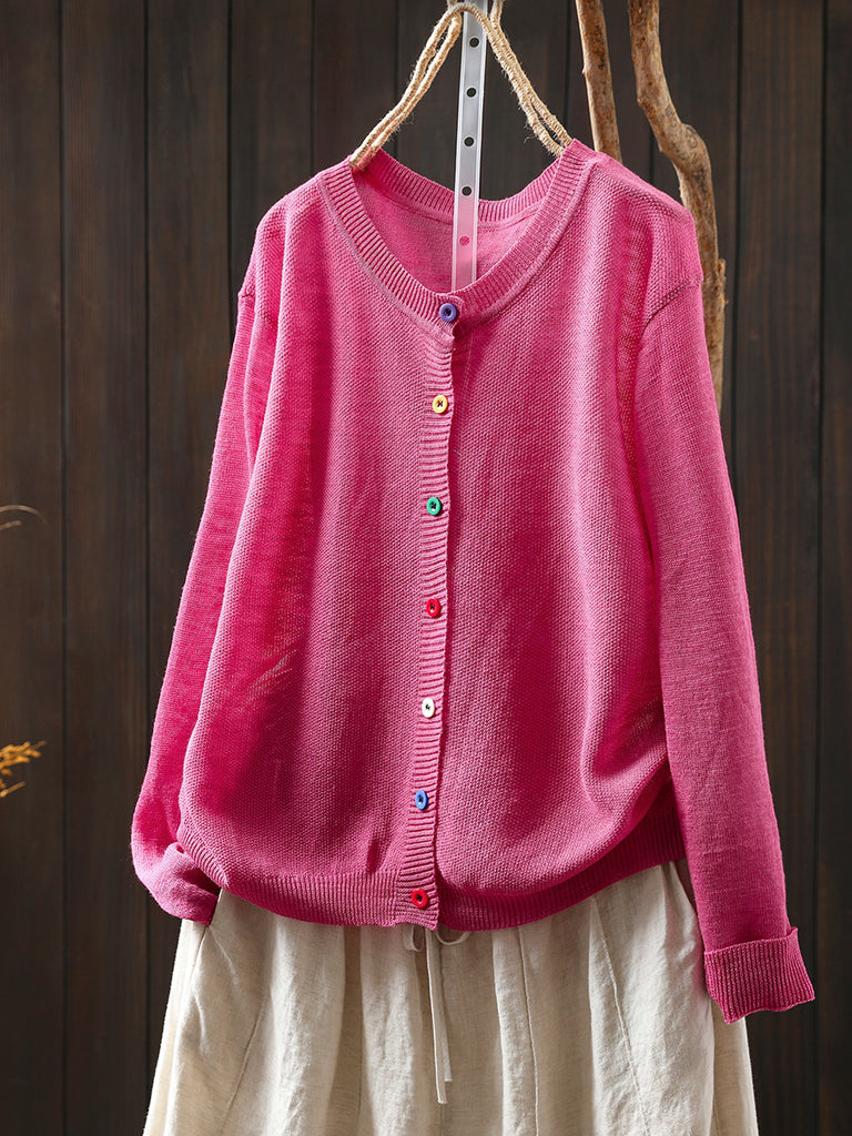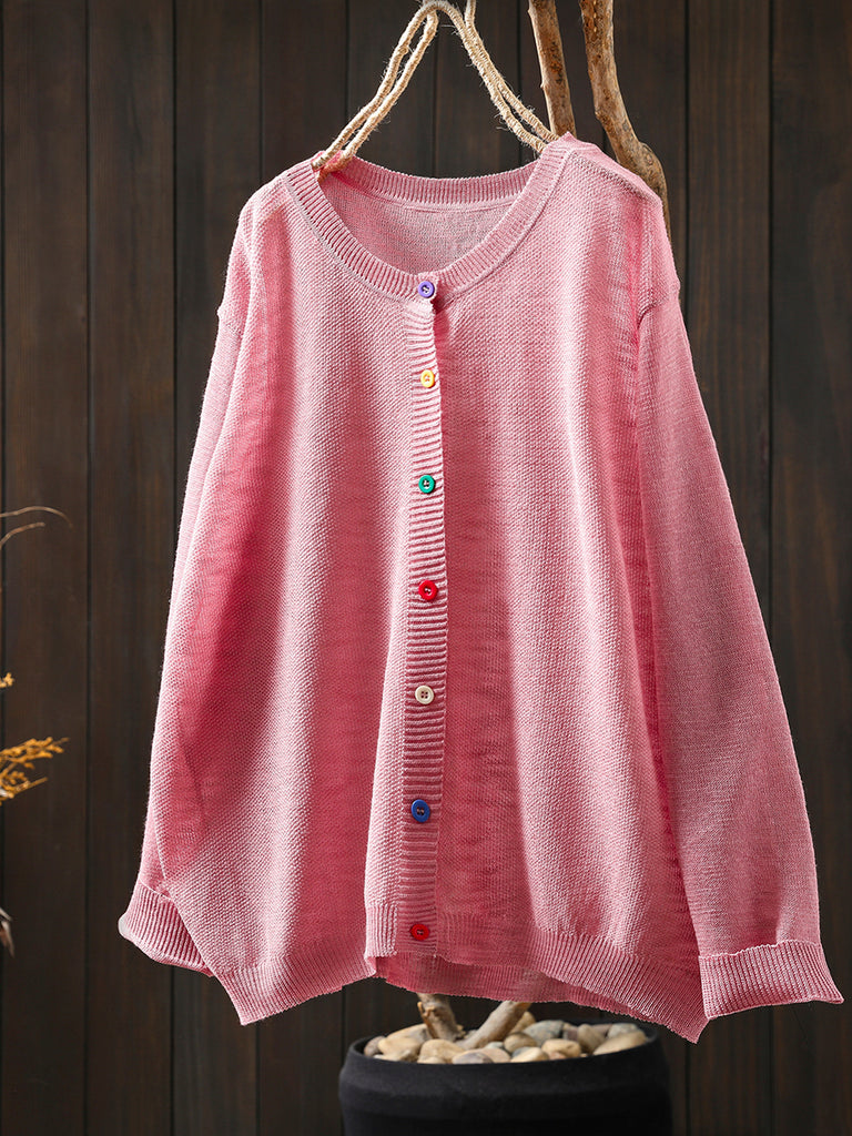 Chemise d'été décontractée à col rond et boutons colorés pour femme