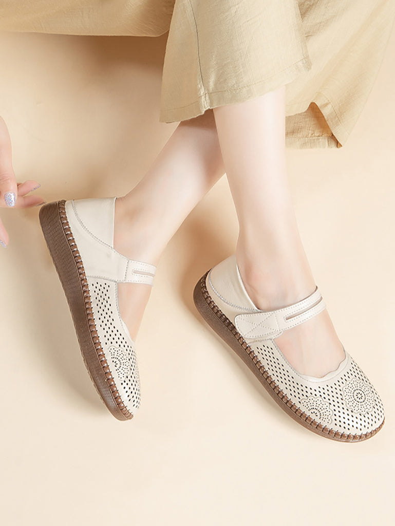 Chaussures d'été décontractées à talons bas en cuir véritable pour femmes
