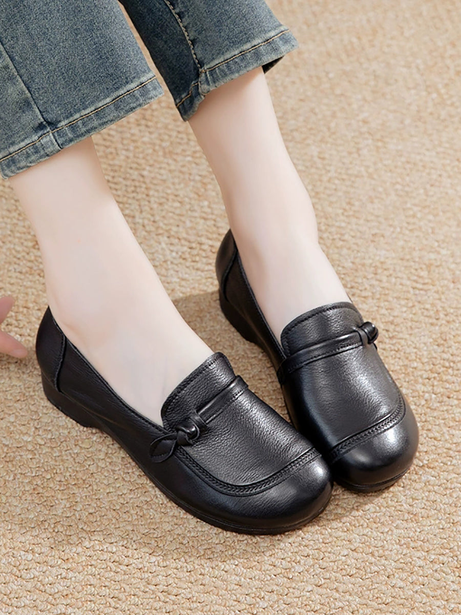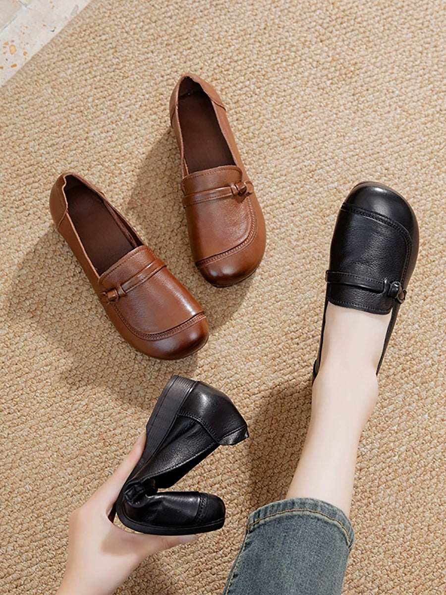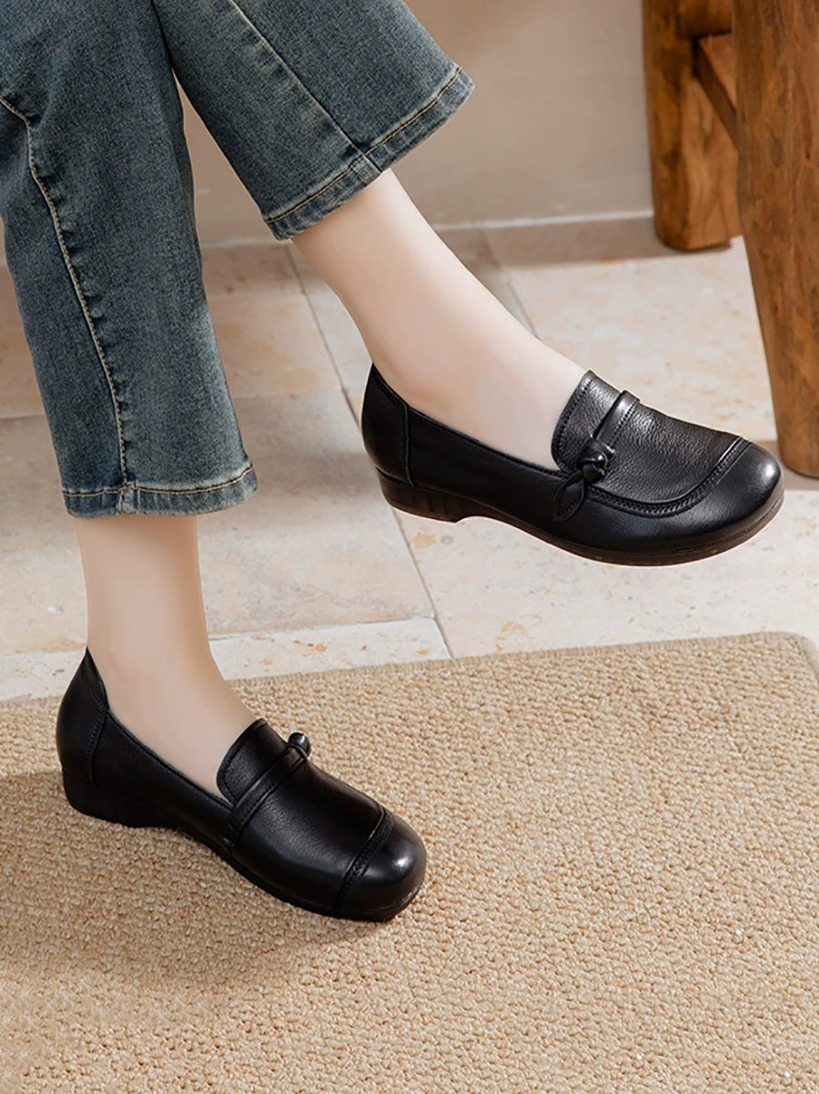 Chaussures vintage pour femmes en cuir véritable à petits talons