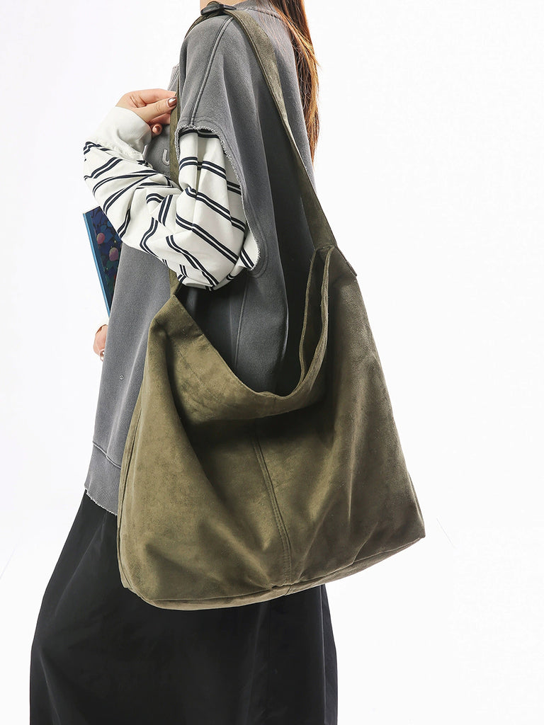 Sac à bandoulière vintage en velours côtelé solide de grande capacité