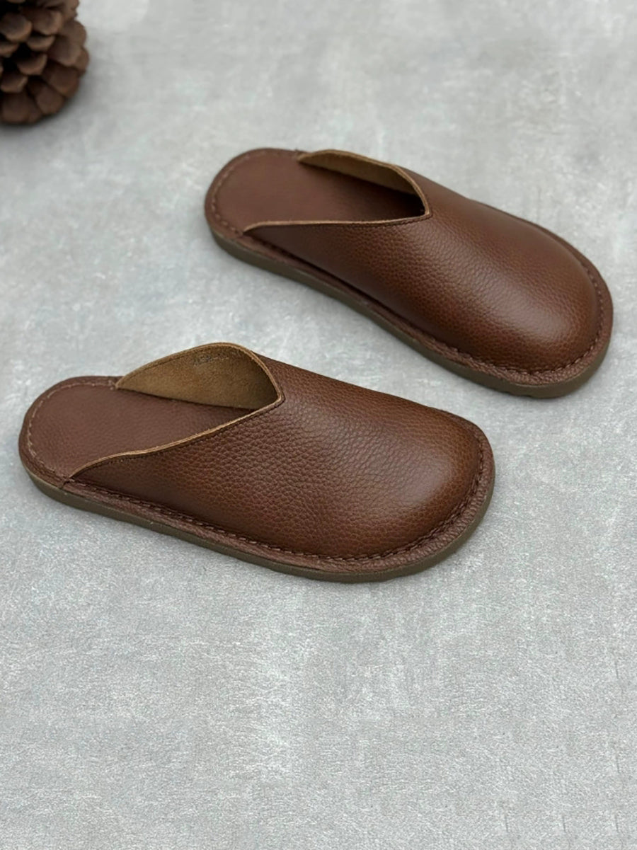 Pantoufles plates d'été pour femmes en cuir véritable souple