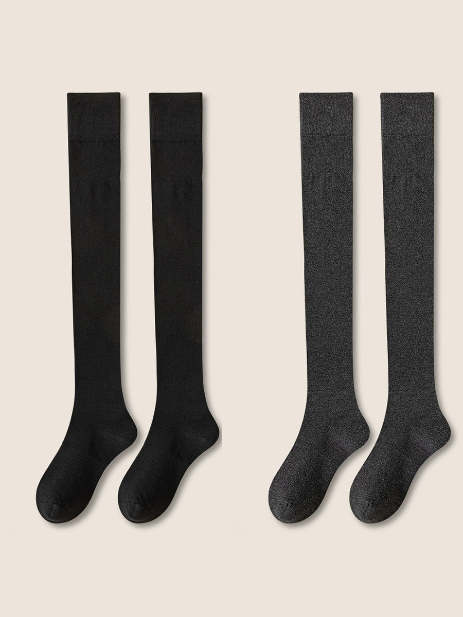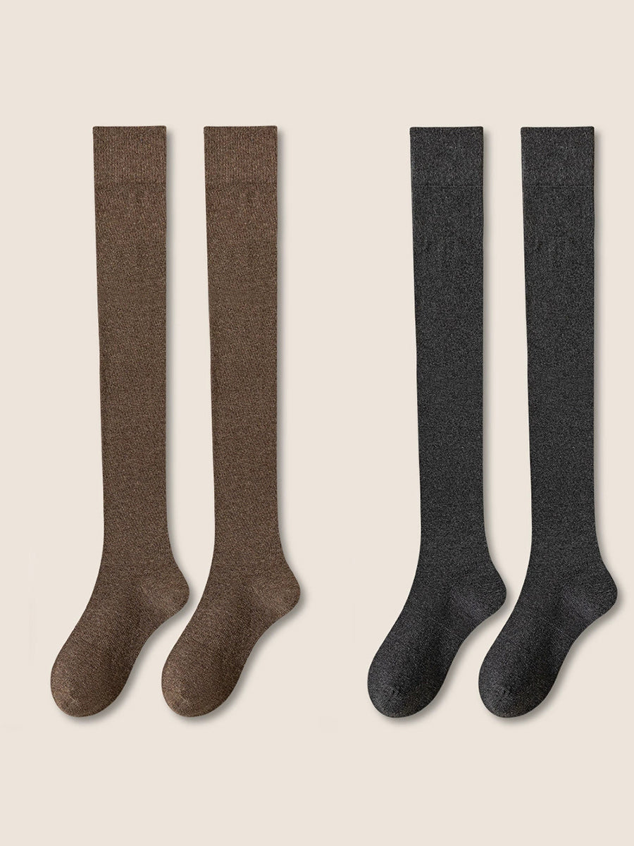 2 paires de chaussettes longues unies à motifs artistiques pour femmes