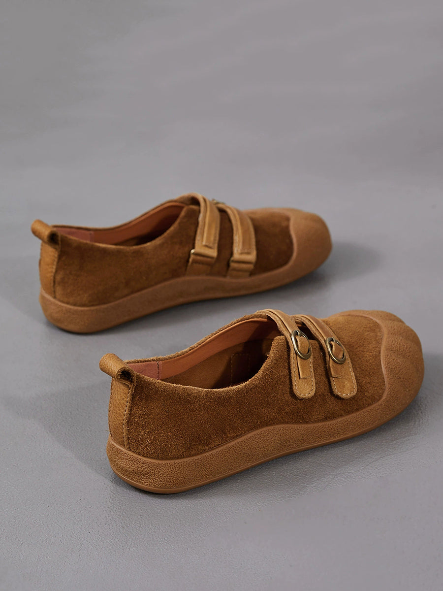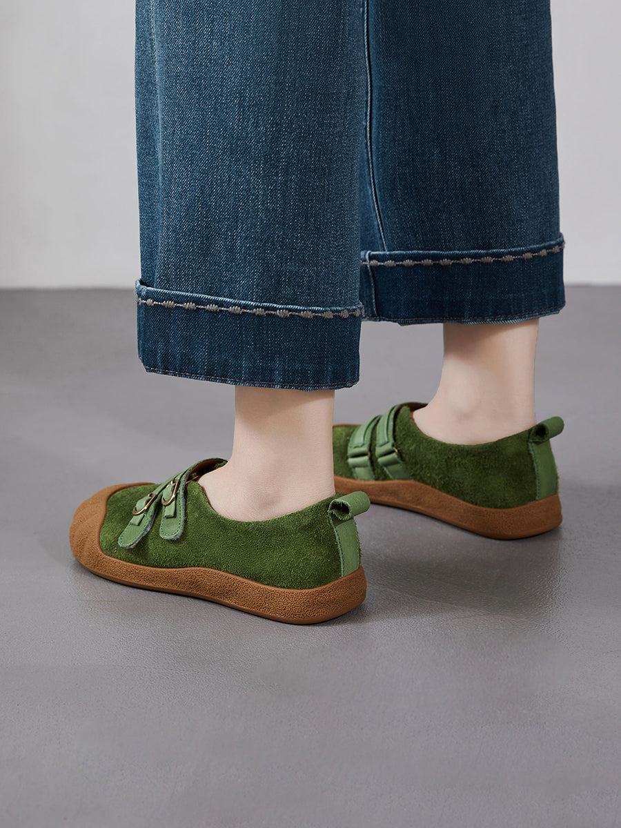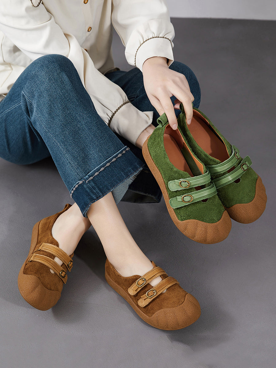 Chaussures plates rétro printemps pour femmes en cuir véritable