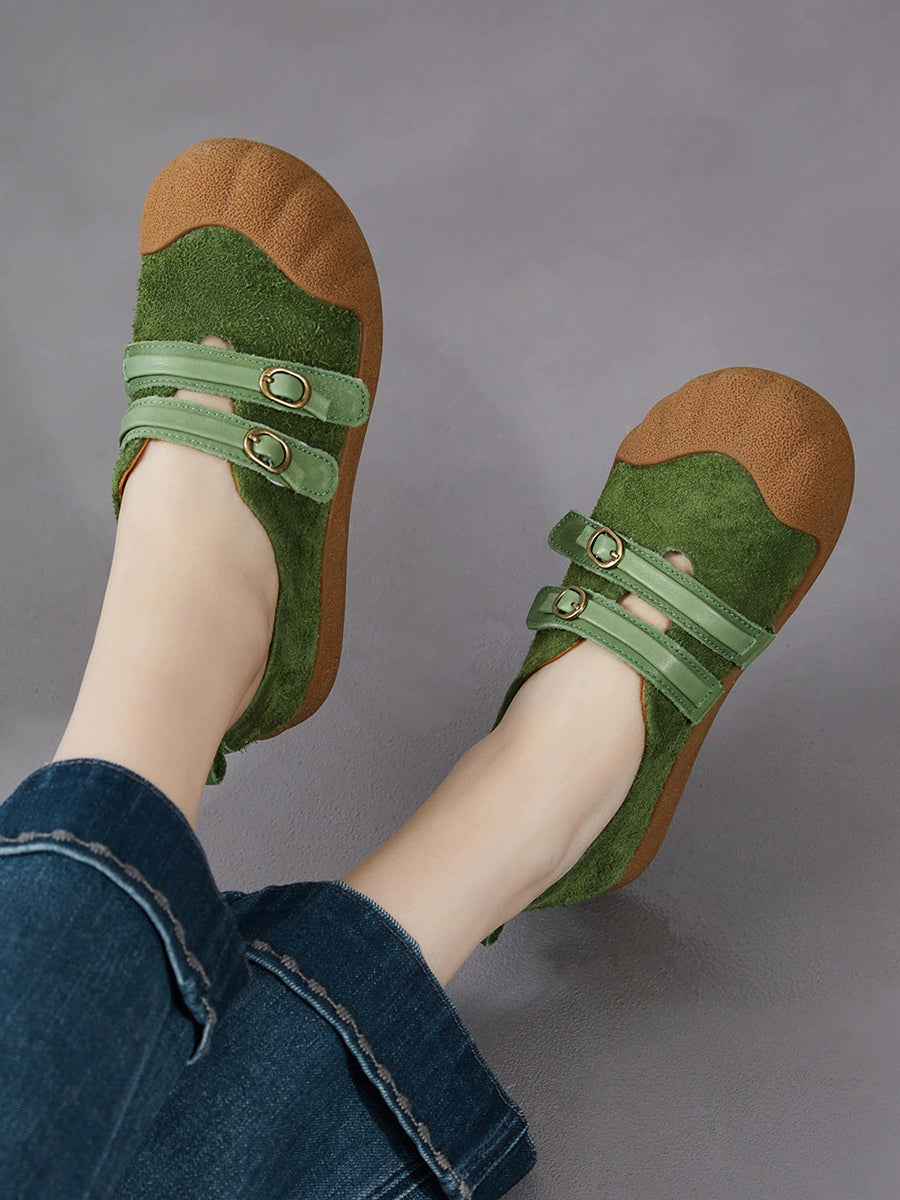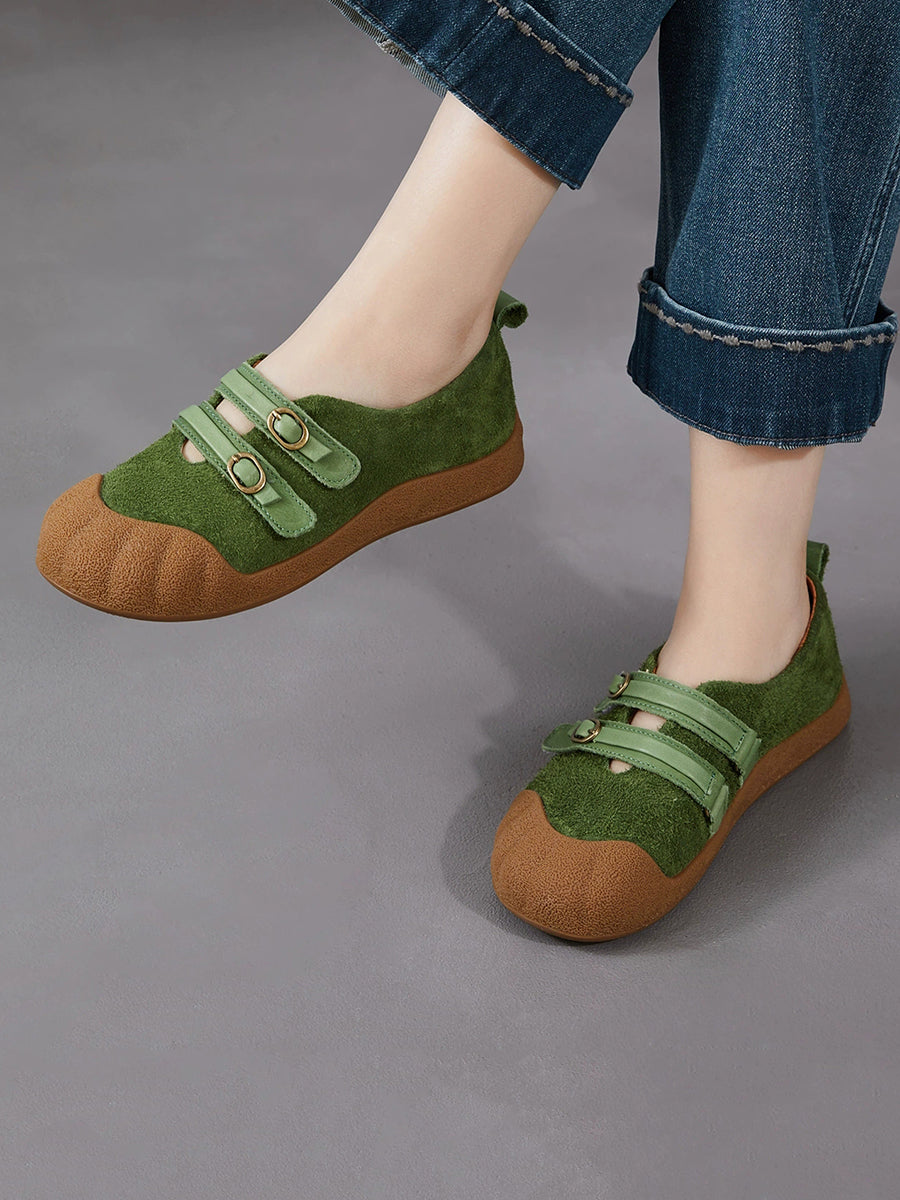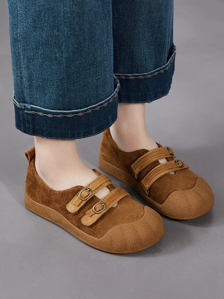Chaussures plates rétro printemps pour femmes en cuir véritable