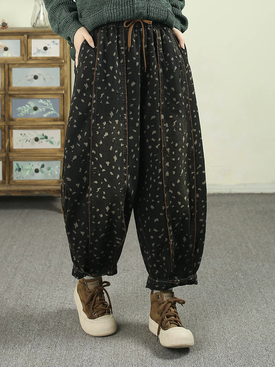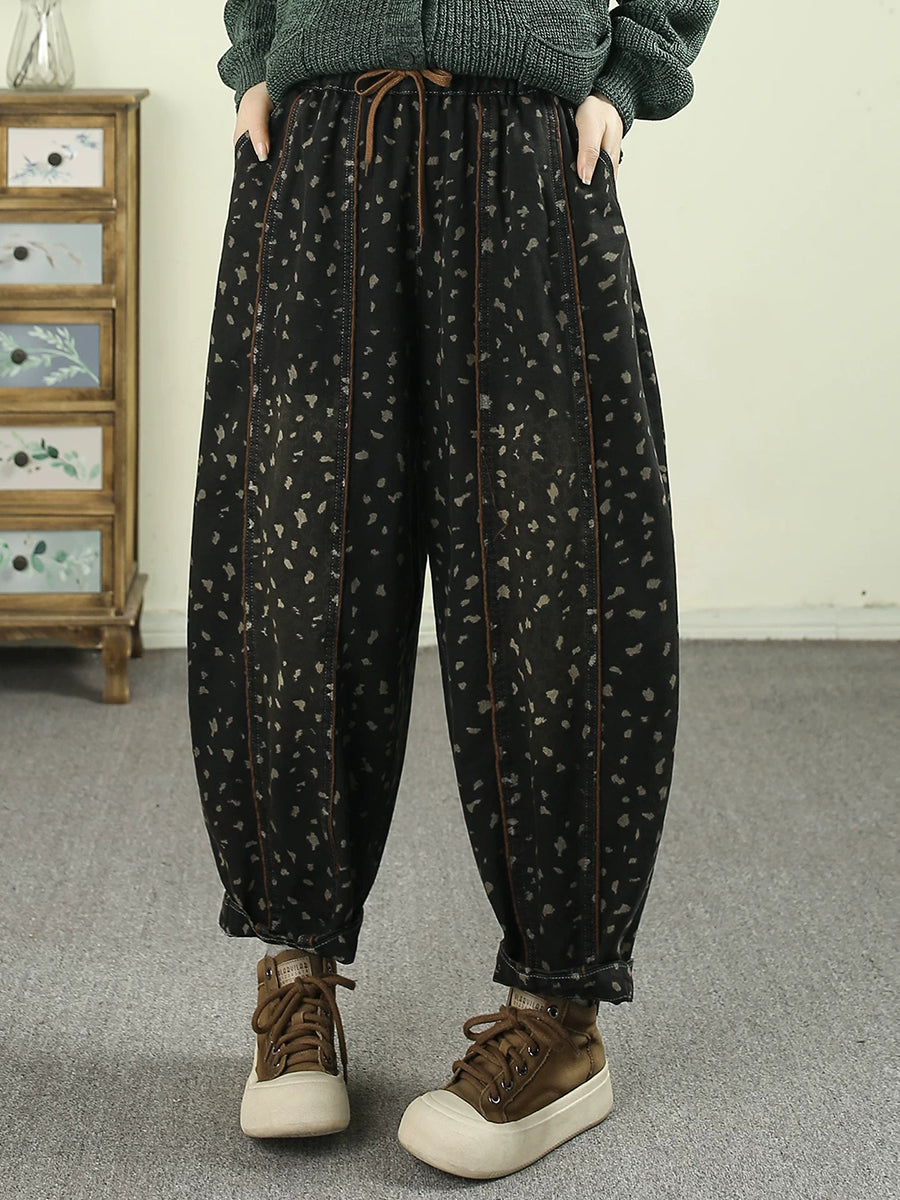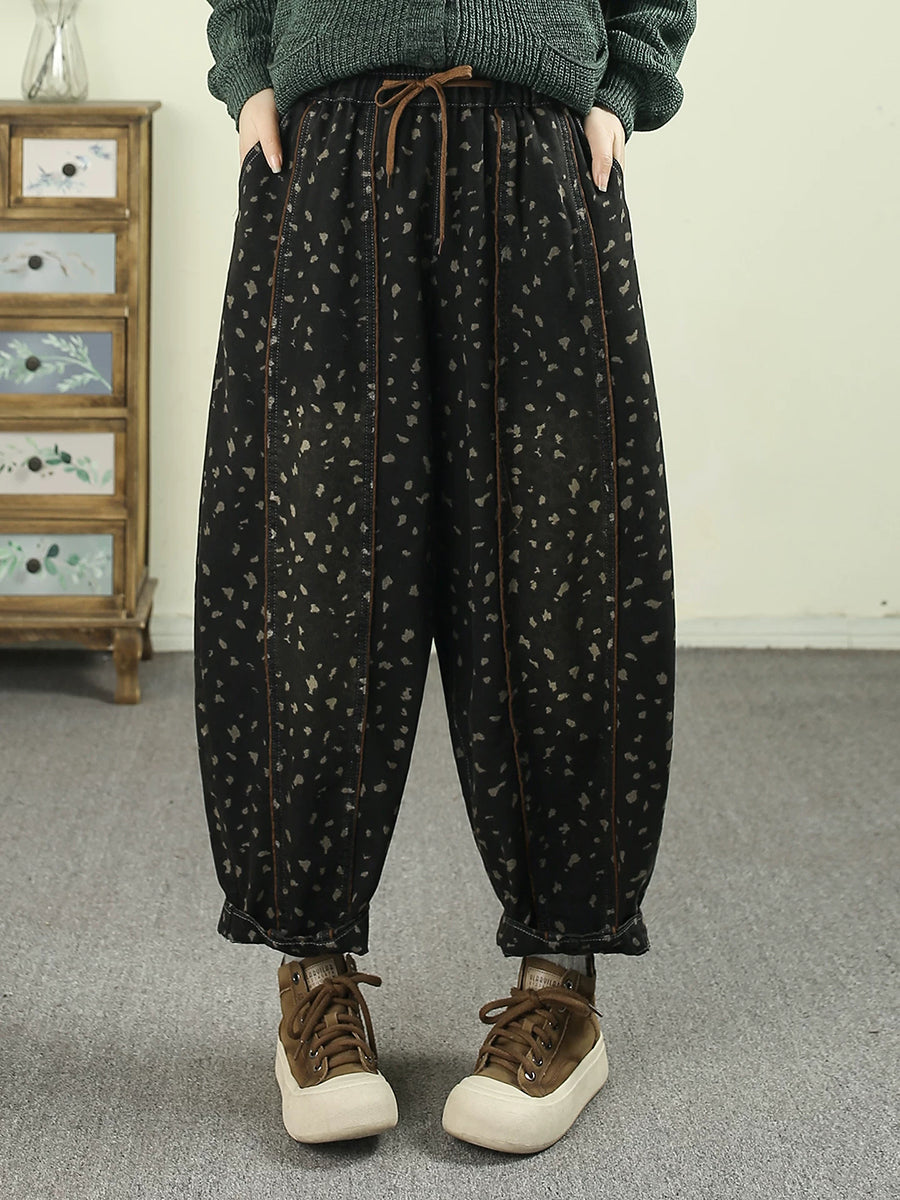 Pantalon harem en denim vintage léopard pour femme, printemps, style vintage.