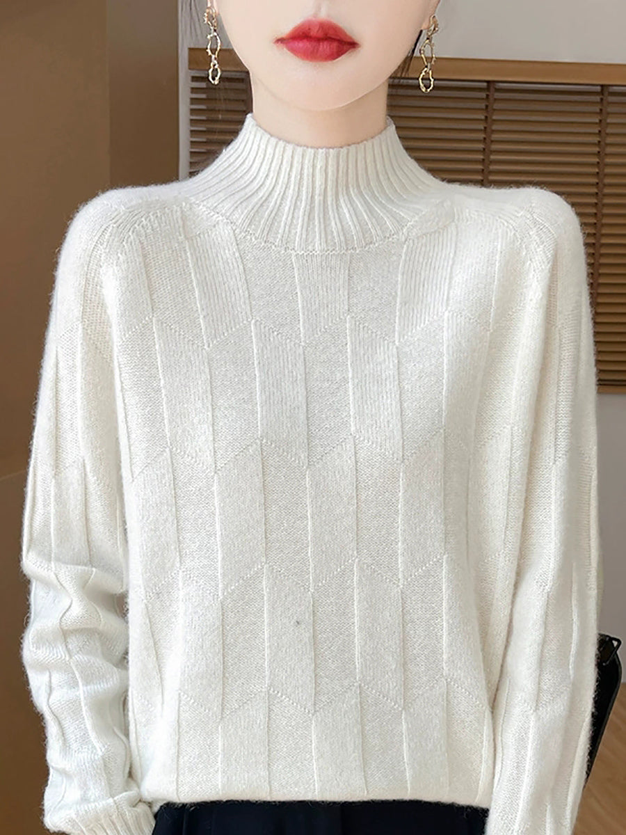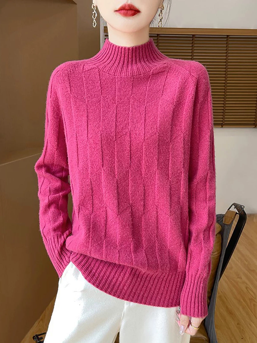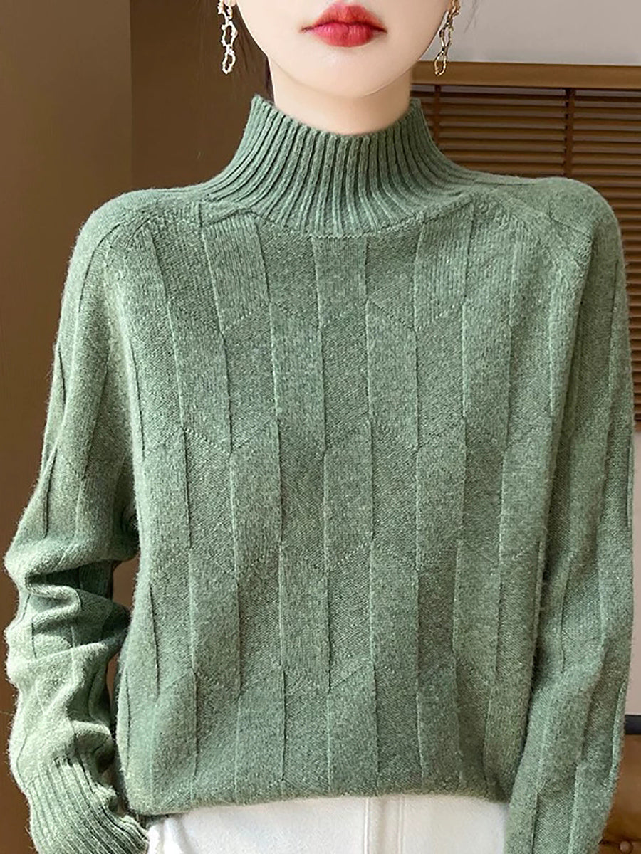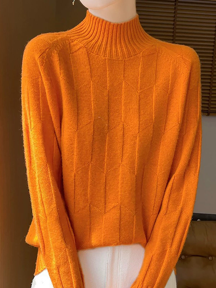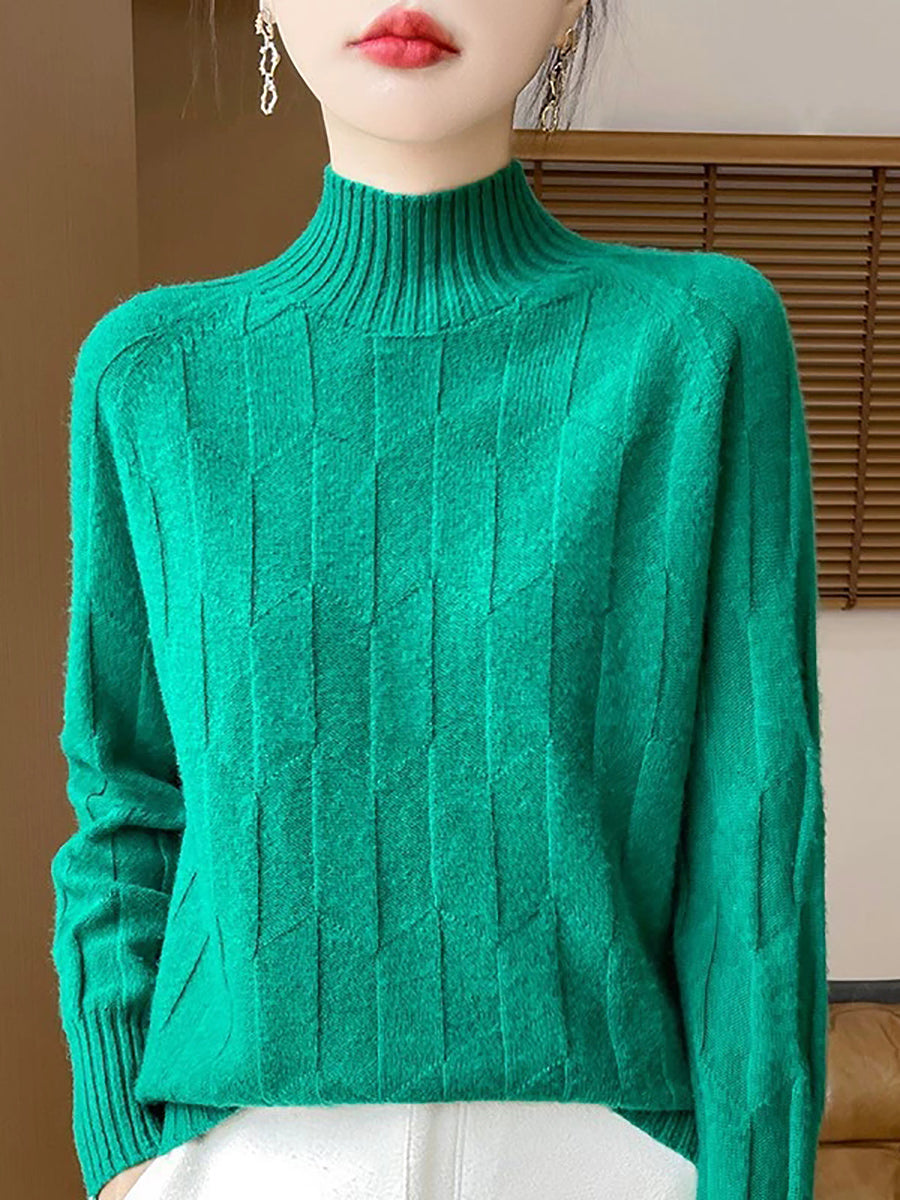 Pull à col roulé mi-long uni pour femme, style artistique, hiver