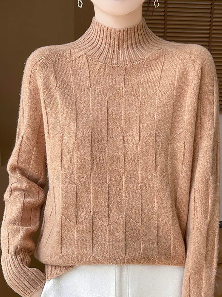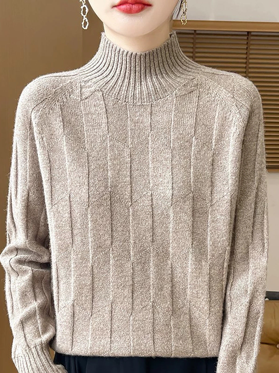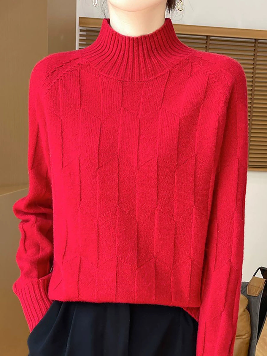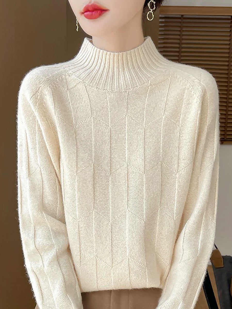 Pull à col roulé mi-long uni pour femme, style artistique, hiver