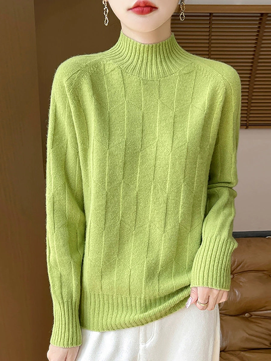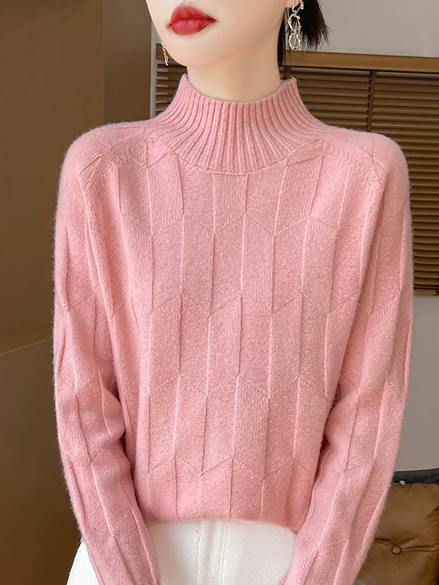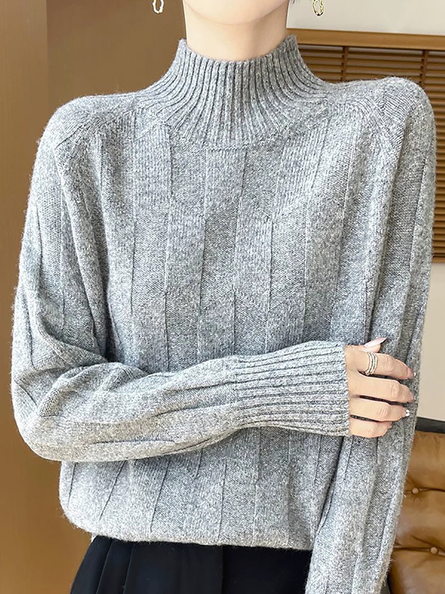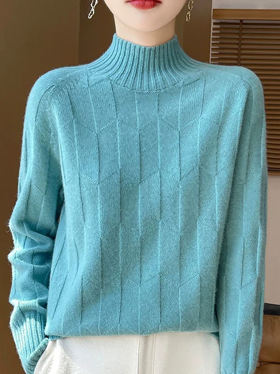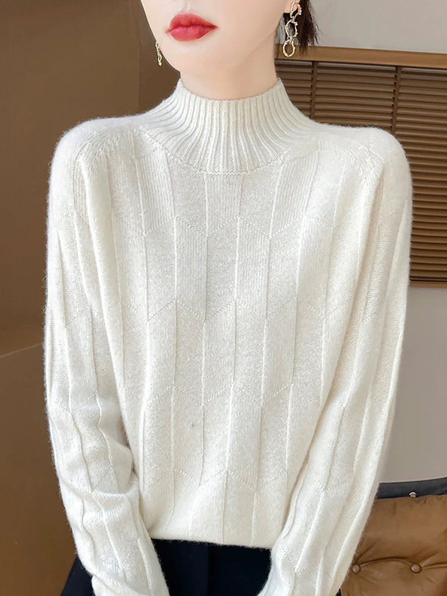 Pull à col roulé mi-long uni pour femme, style artistique, hiver