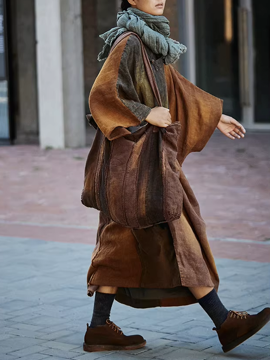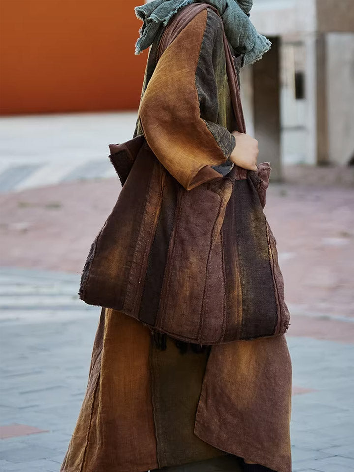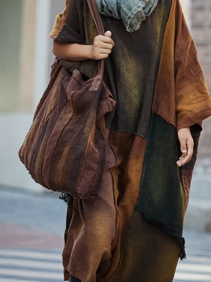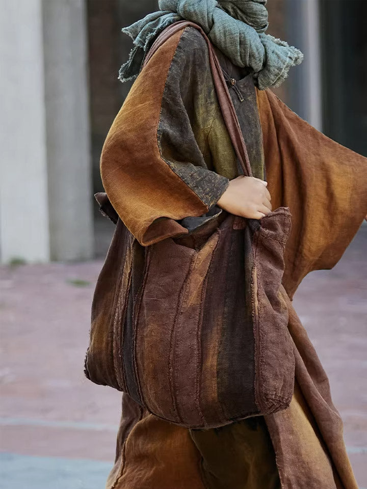 Sac à bandoulière patchwork marron rétro teint aux plantes 1106