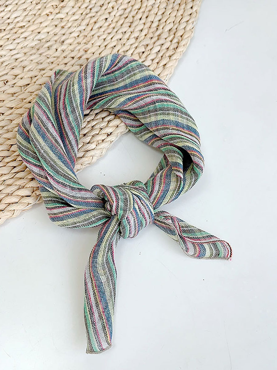 Écharpe carrée fine à rayures artistiques pour femme