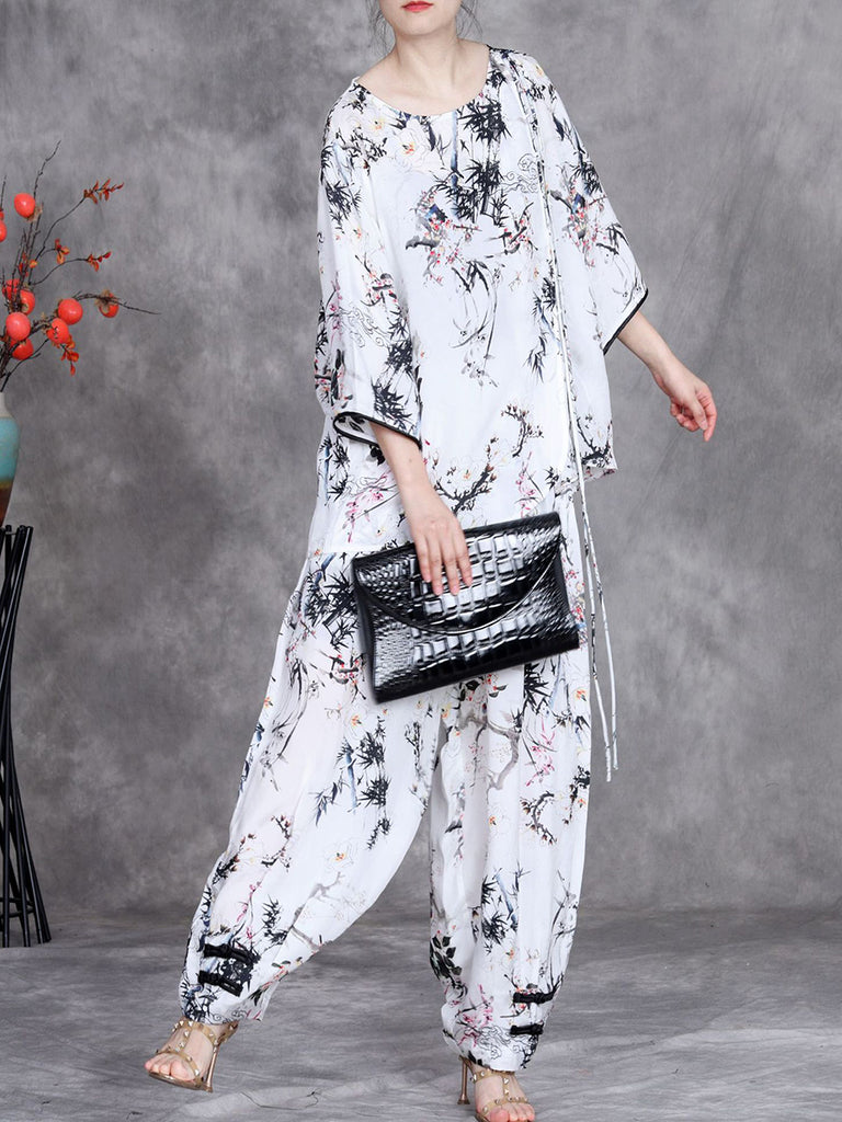 Ensembles d'été en lin à fleurs ethniques pour femmes