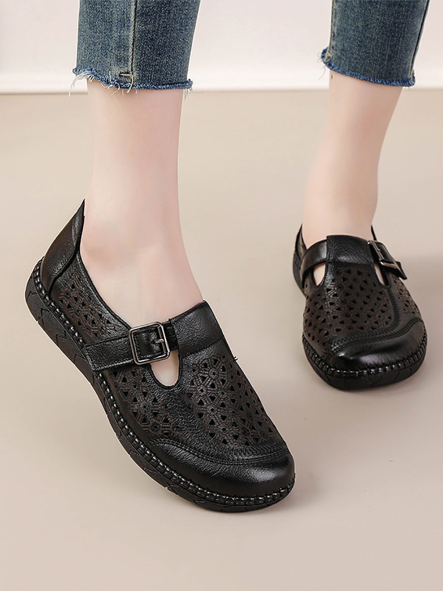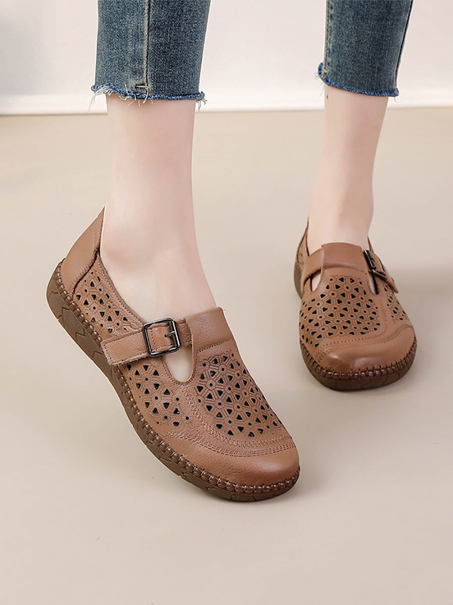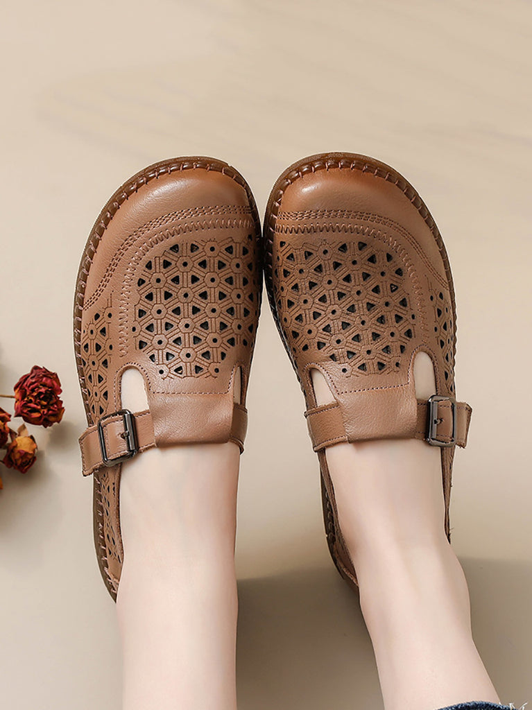 Sandales plates décontractées d'été en cuir véritable pour femmes