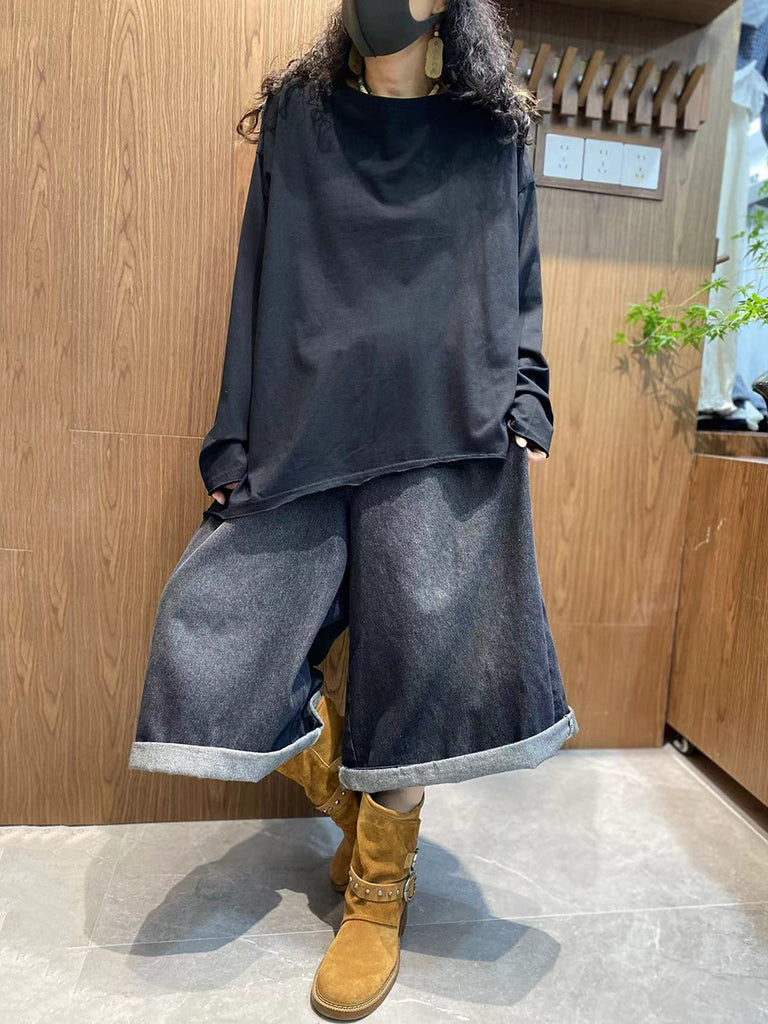 Chemise décontractée à col rond pour femme, couleur unie, 100 % coton, automne