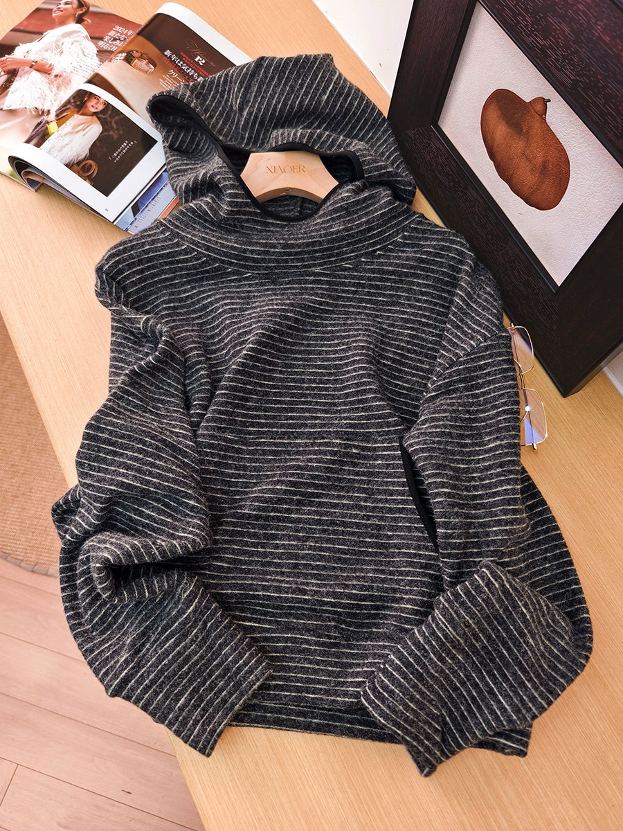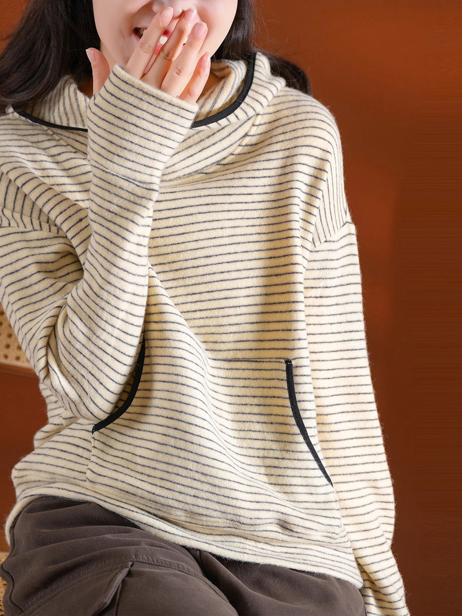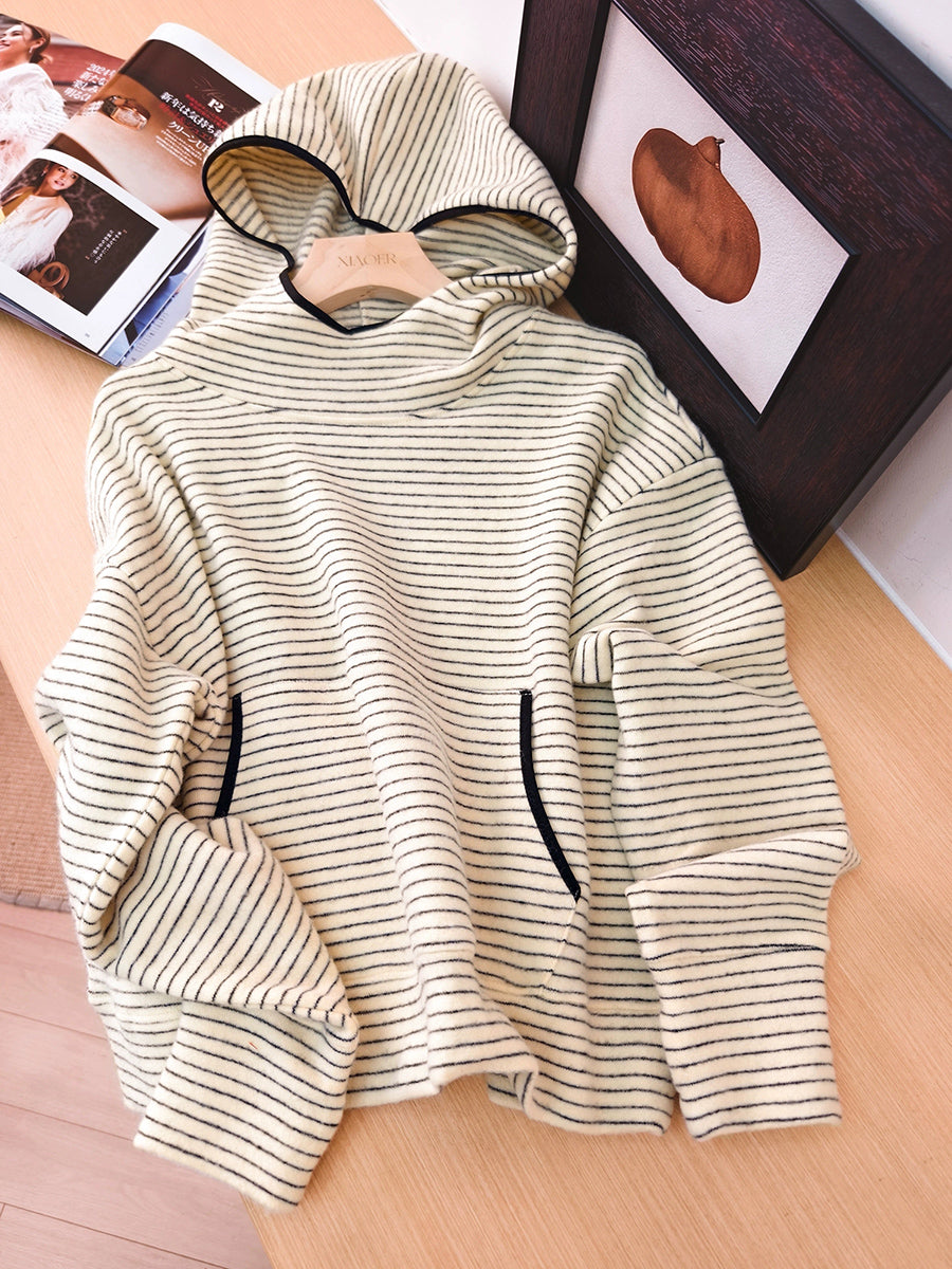 Sweat à capuche doux à rayures et poches pour femme, style décontracté automne-été.