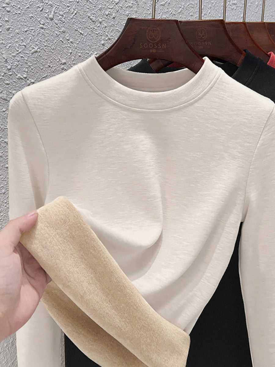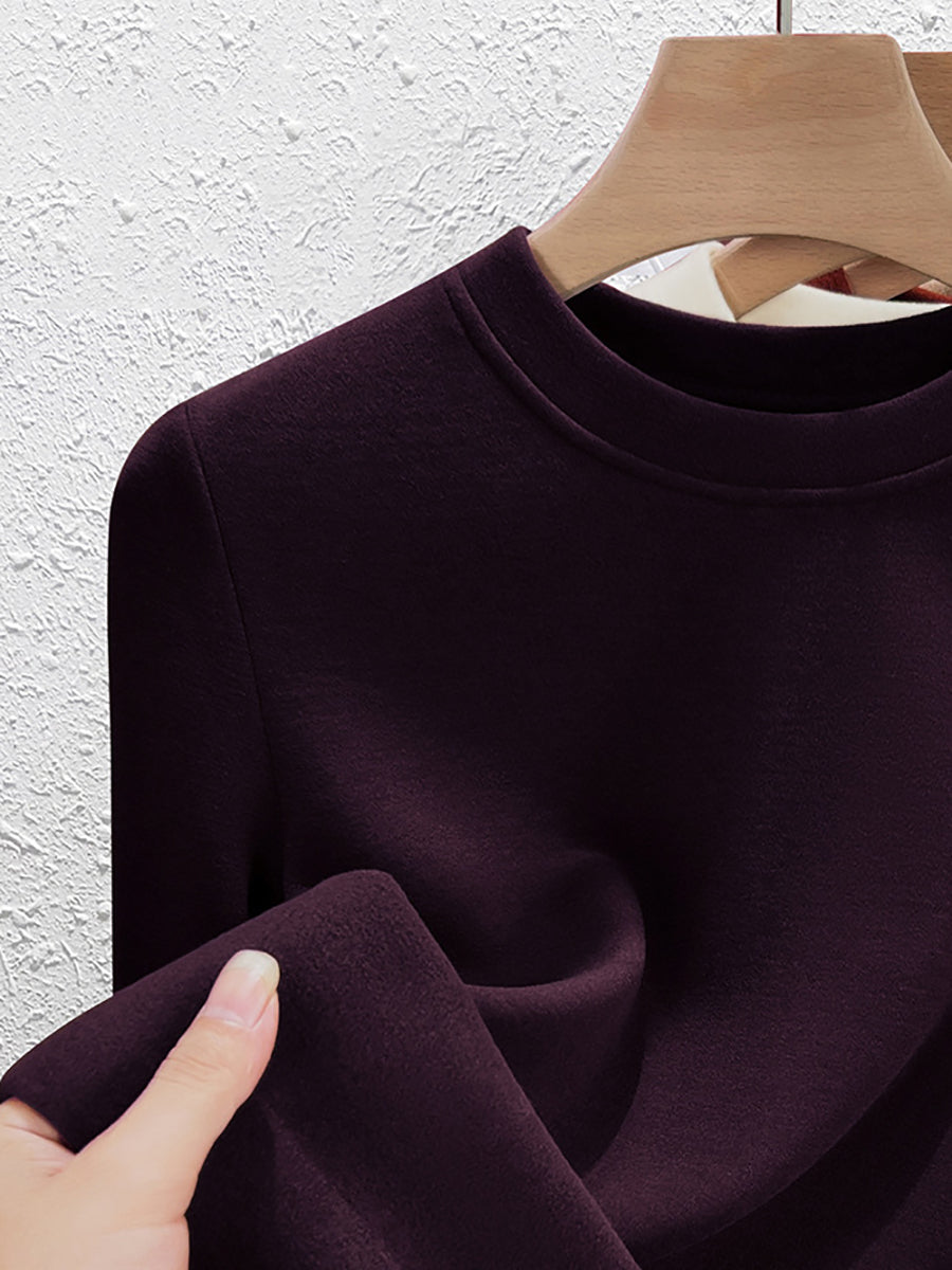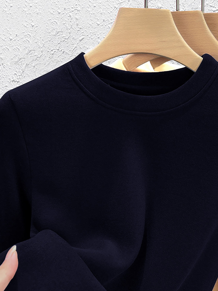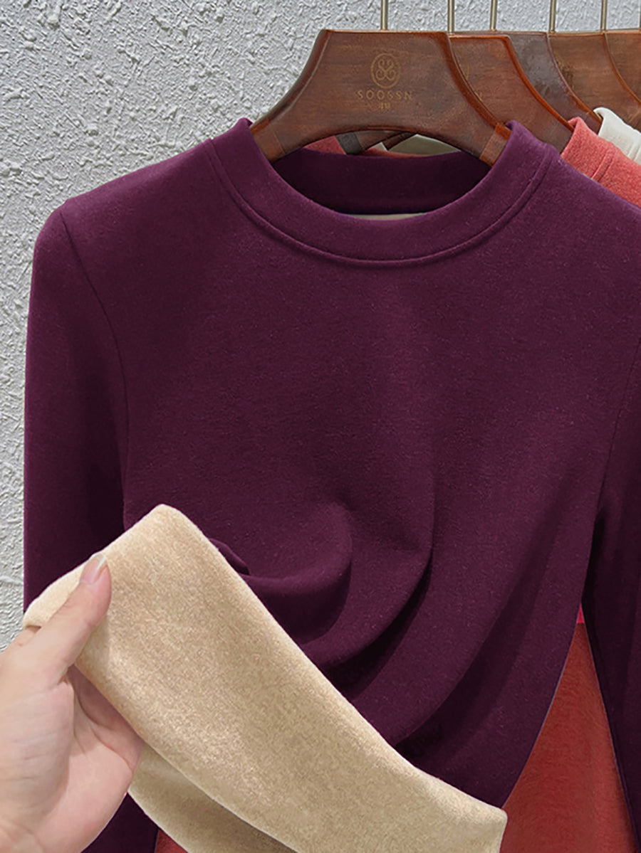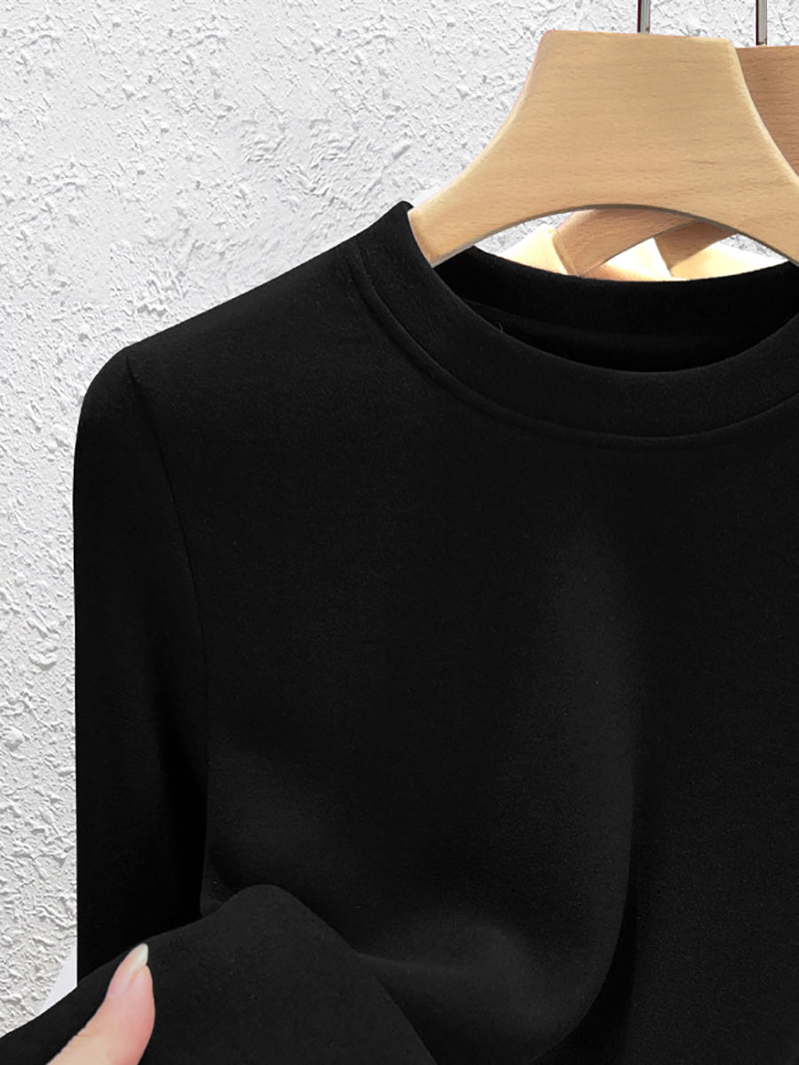 Chemisier d'hiver pour femme, style artistique, couleur unie, col rond, bas, blouse