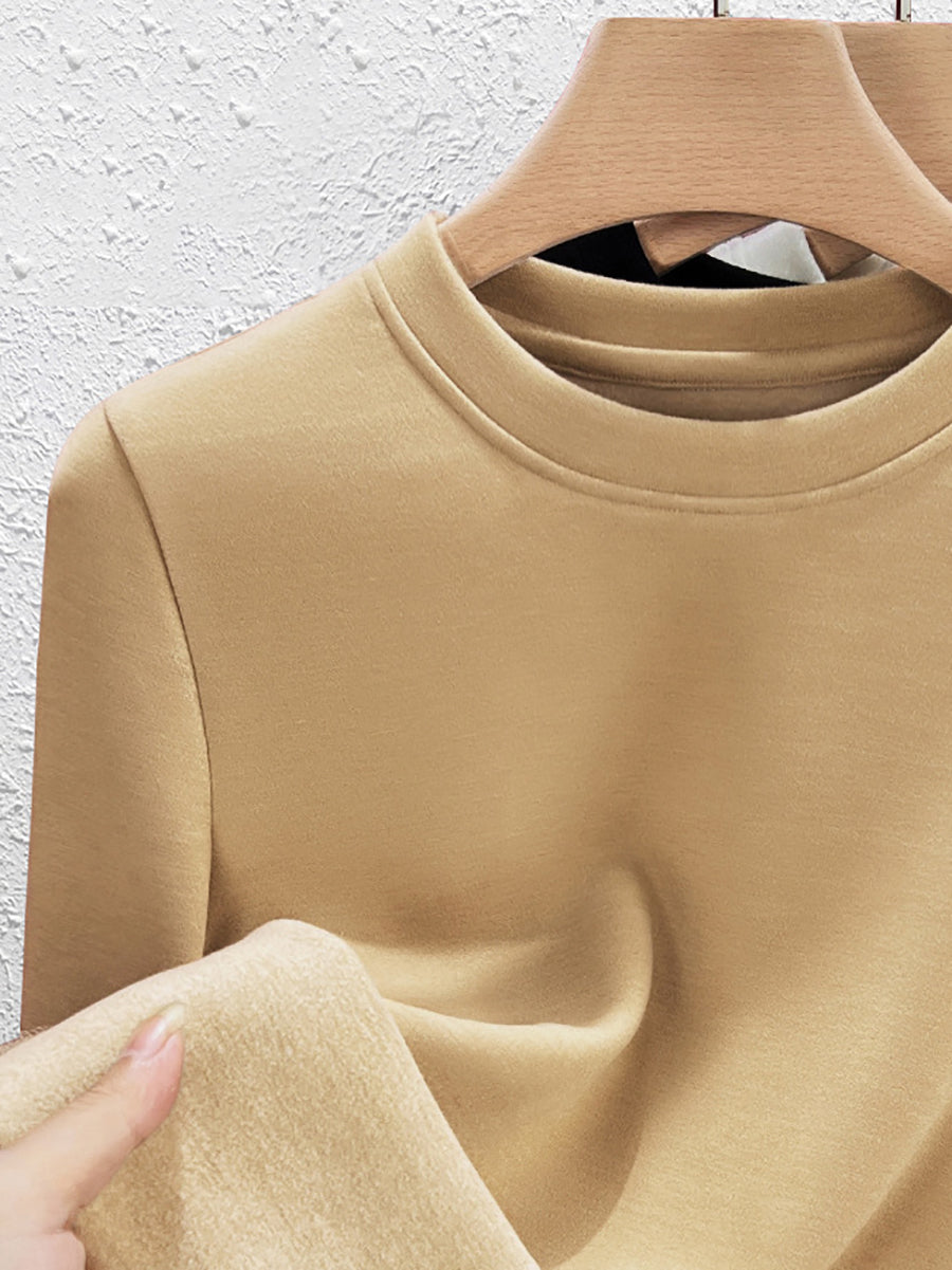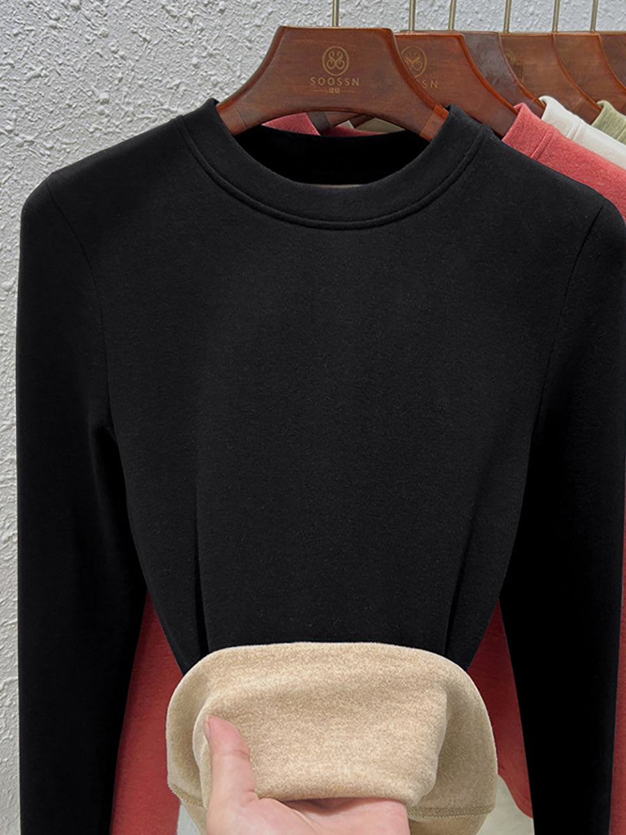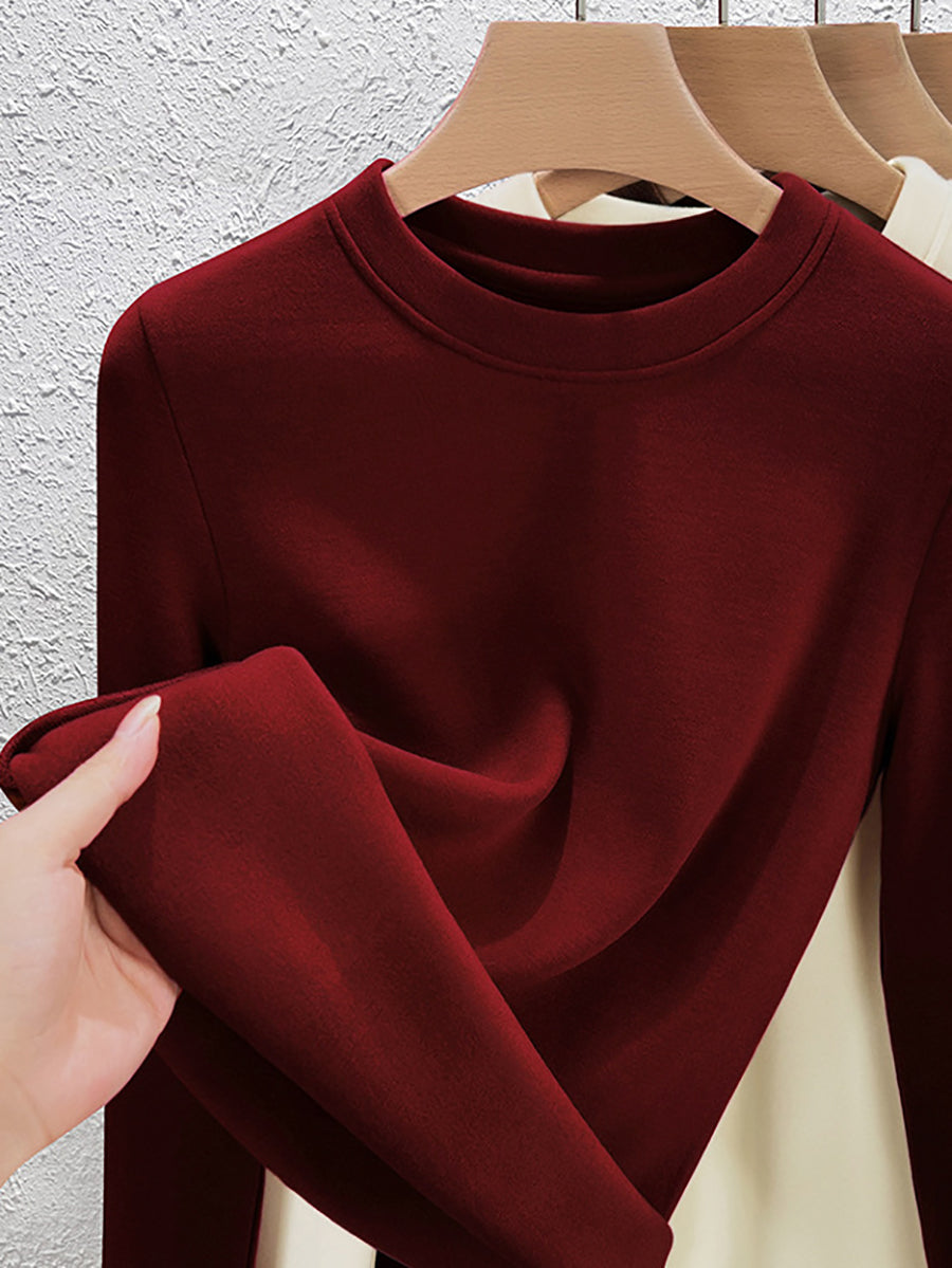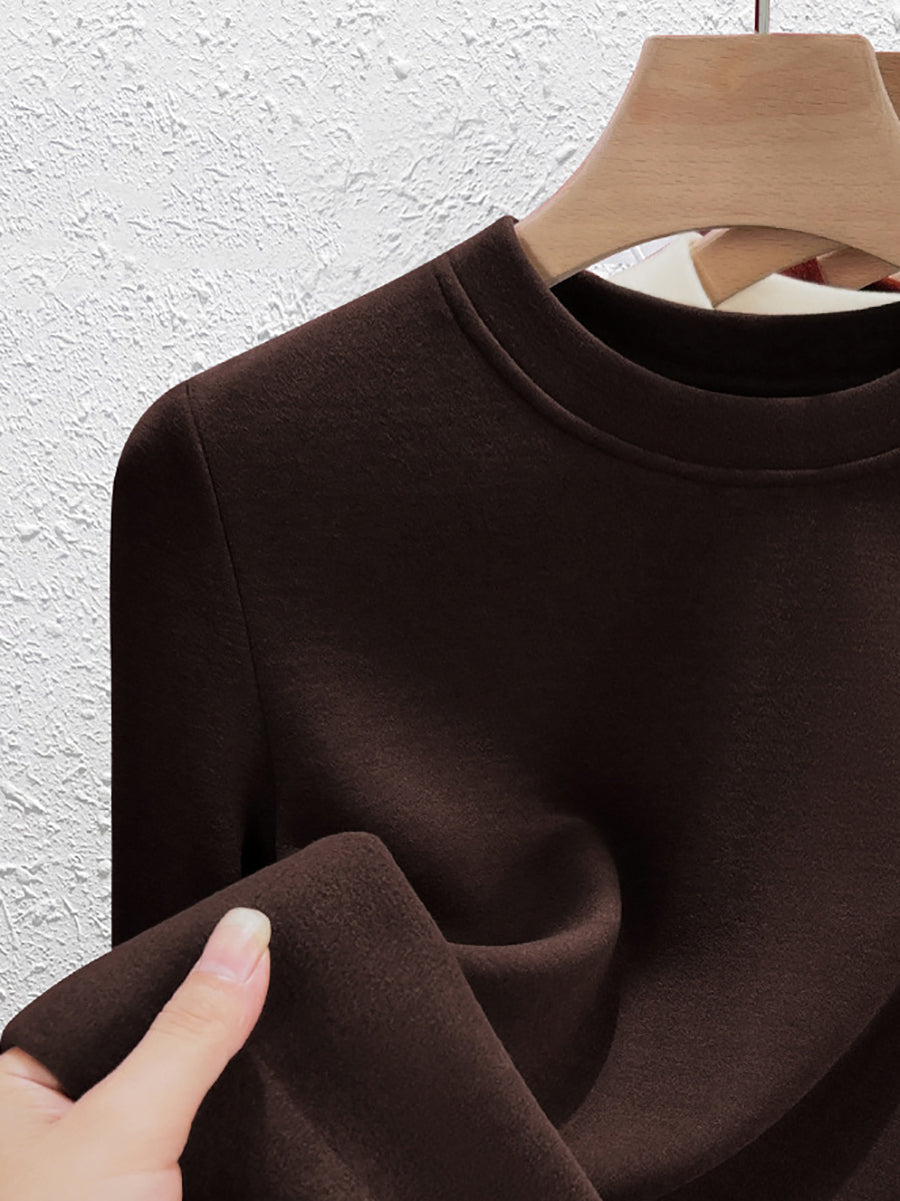 Chemisier d'hiver pour femme, style artistique, couleur unie, col rond, bas, blouse