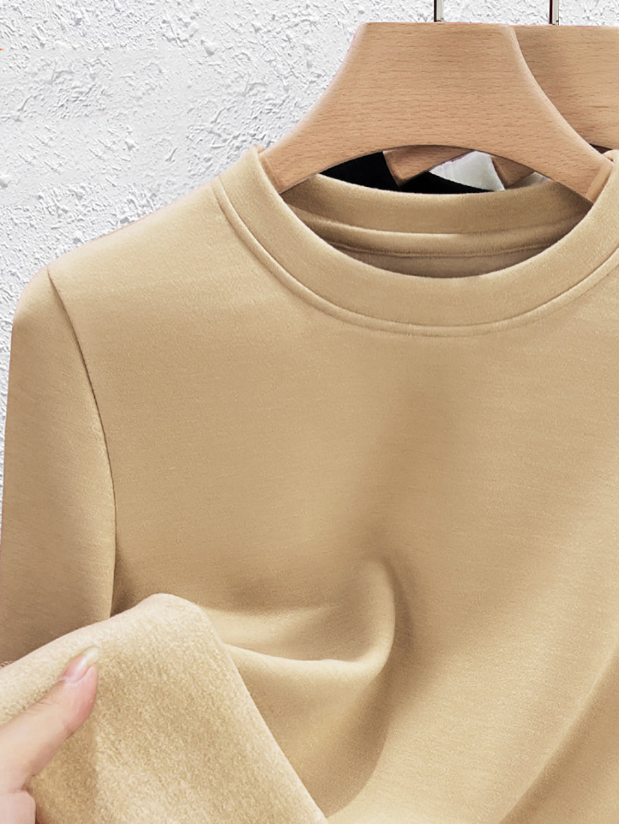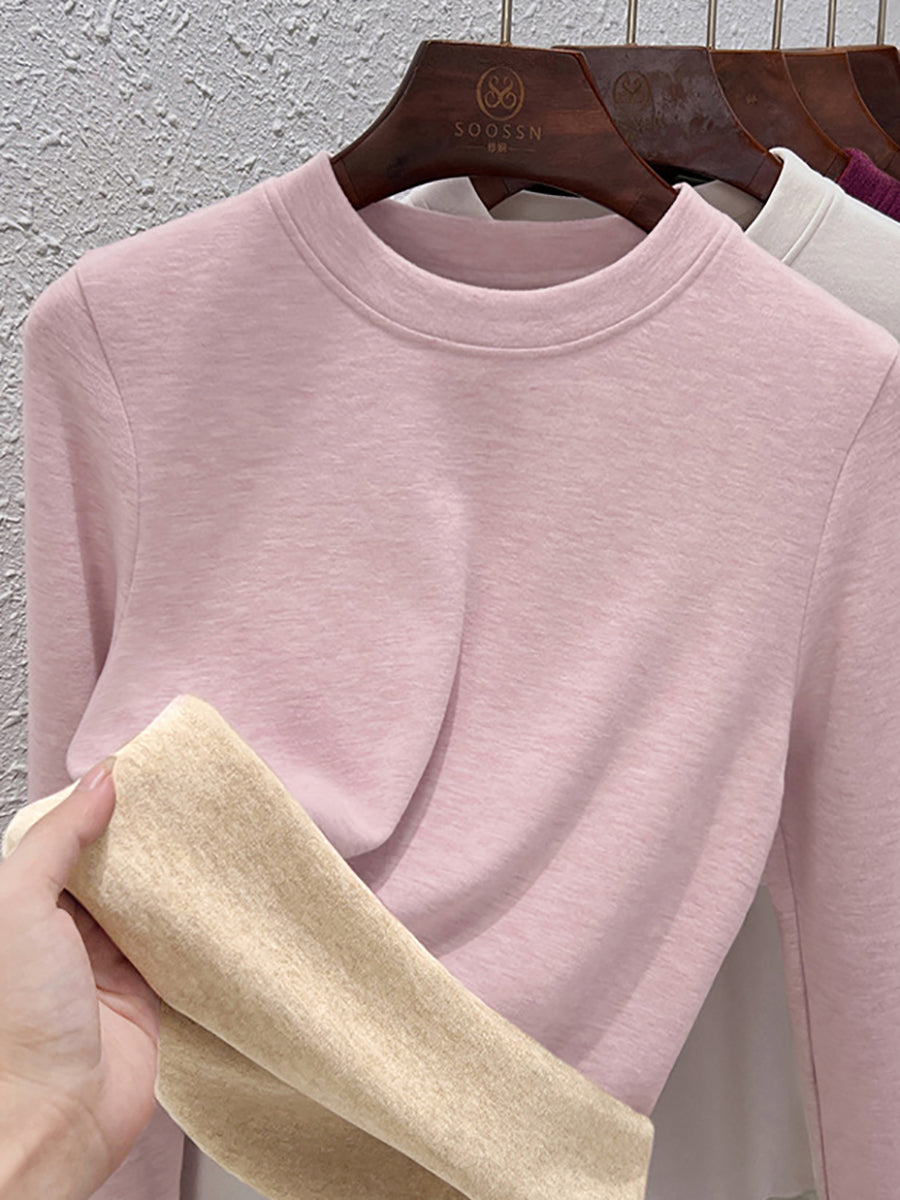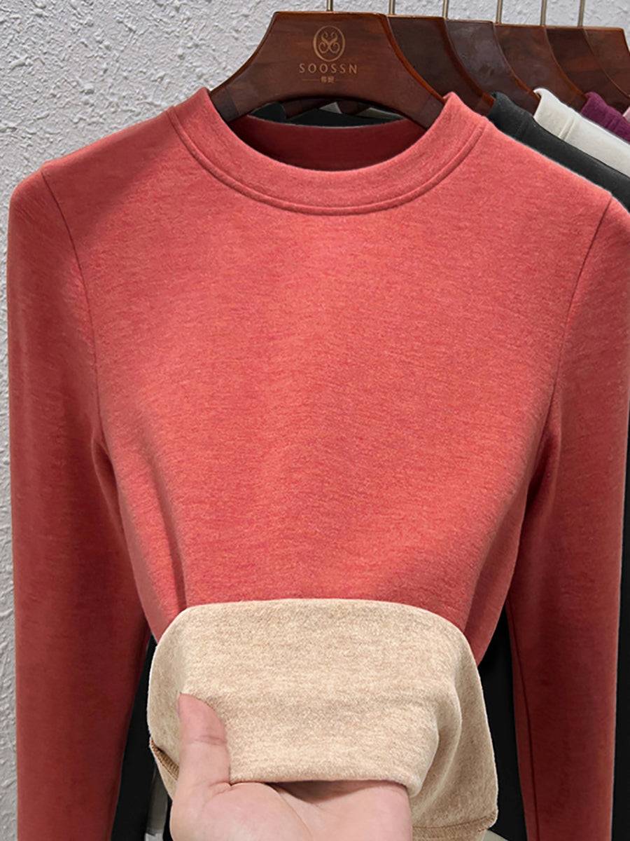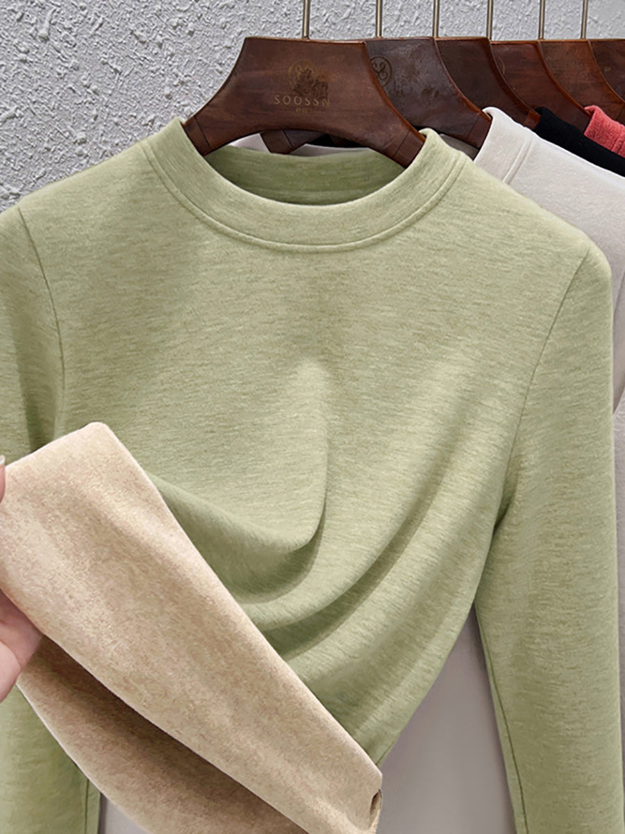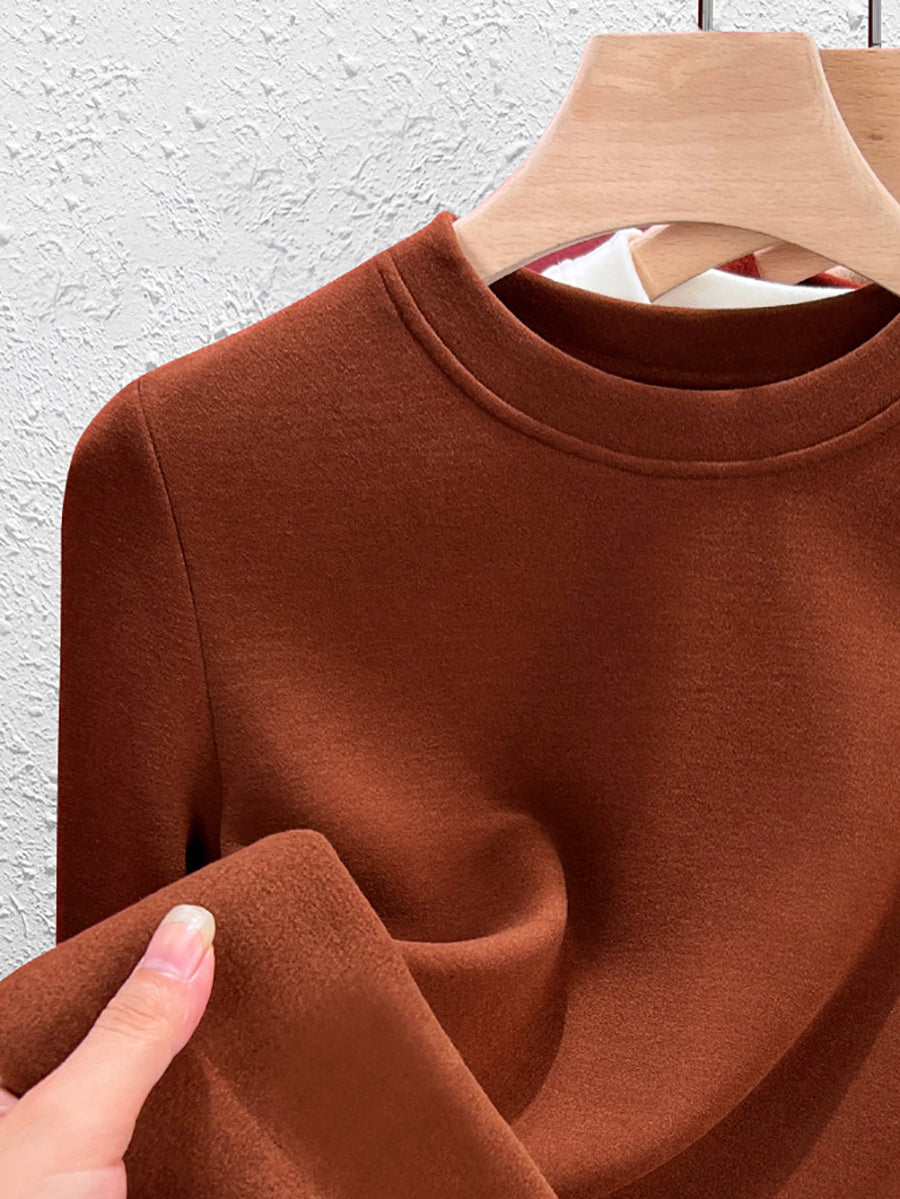 Chemisier d'hiver pour femme, style artistique, couleur unie, col rond, bas, blouse
