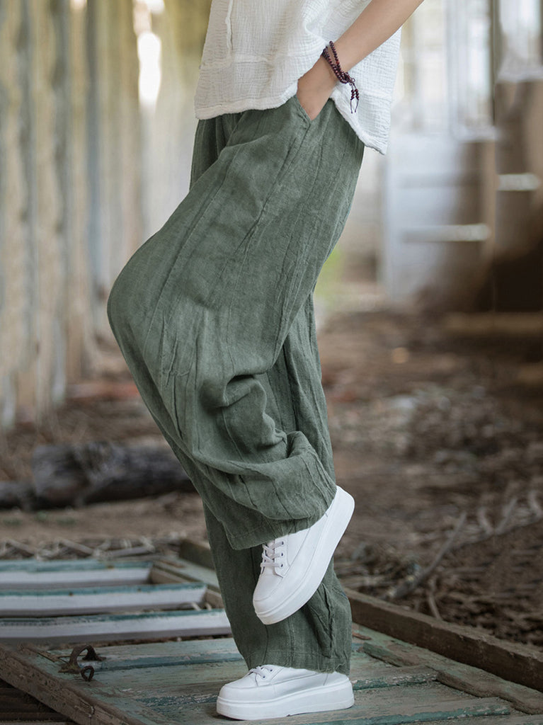 Pantalon sarouel vintage en ramie tie-dye pour femme