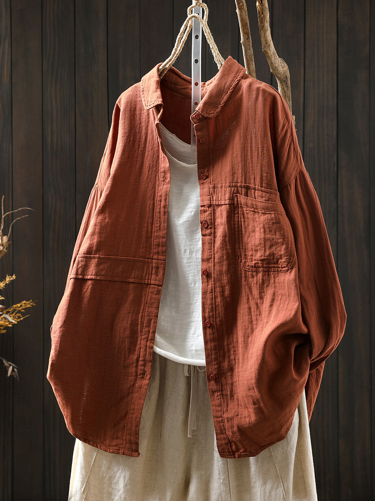 Chemise à col rabattu pour femme, 100 % coton, couleur unie