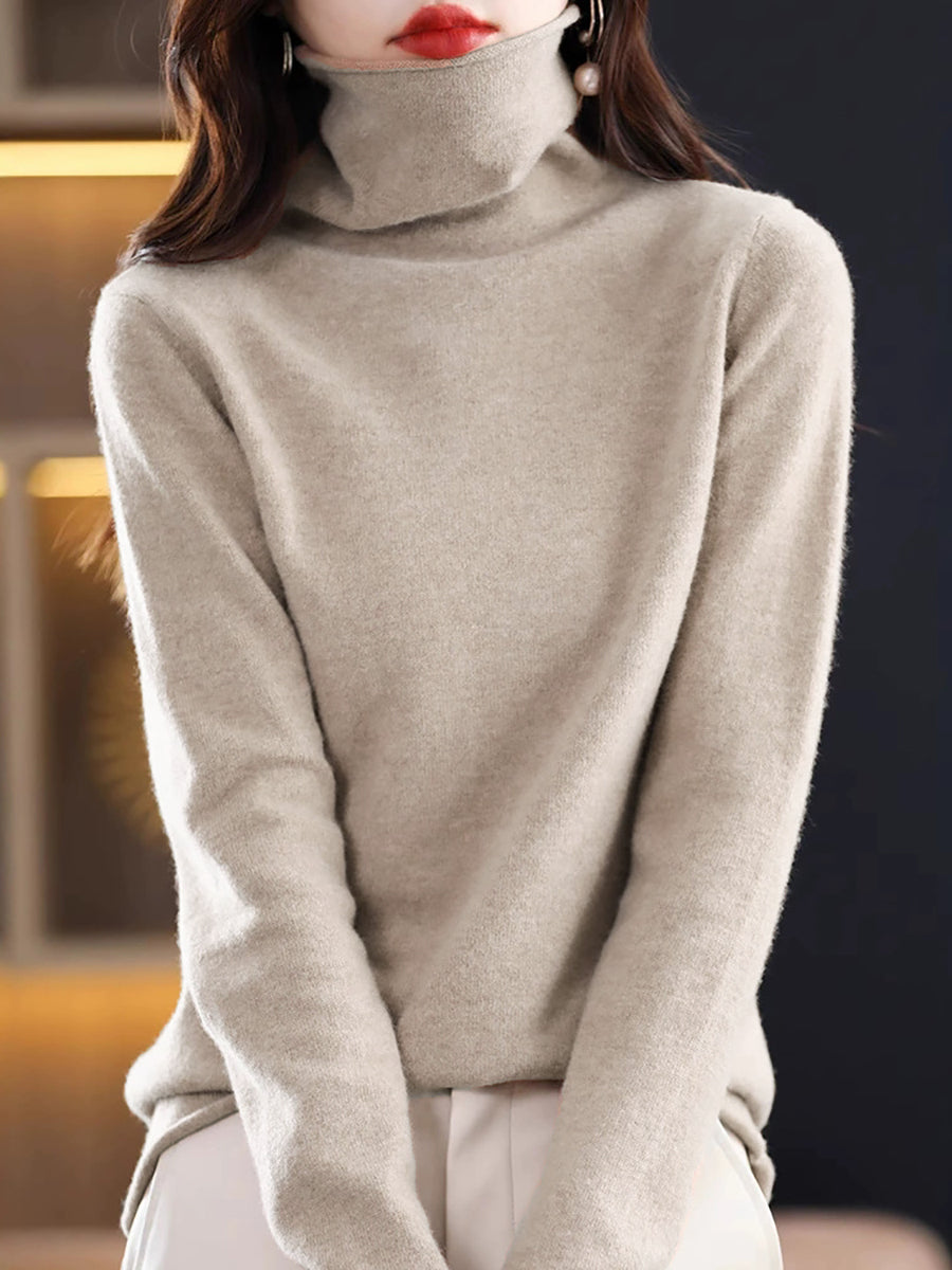 Pull à col roulé en laine tricoté décontracté pour femme, automne