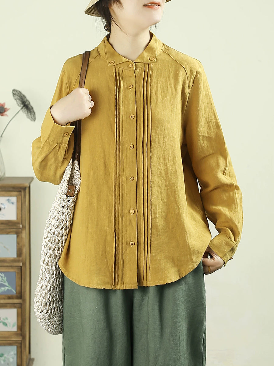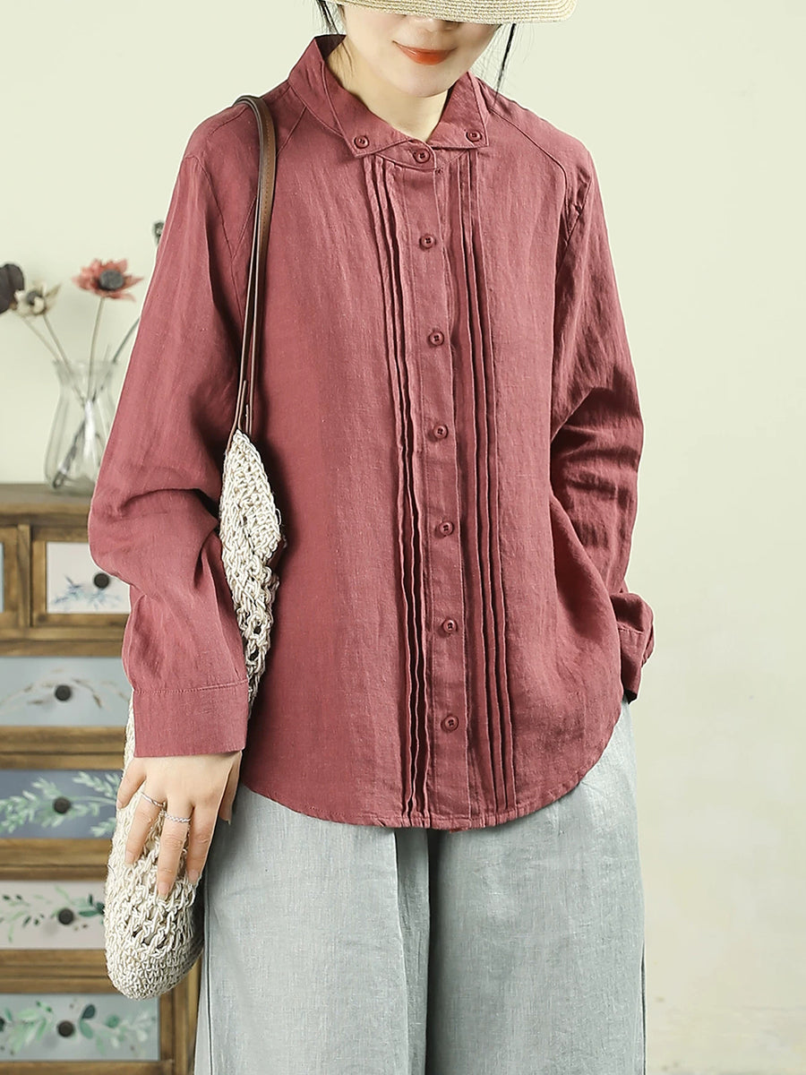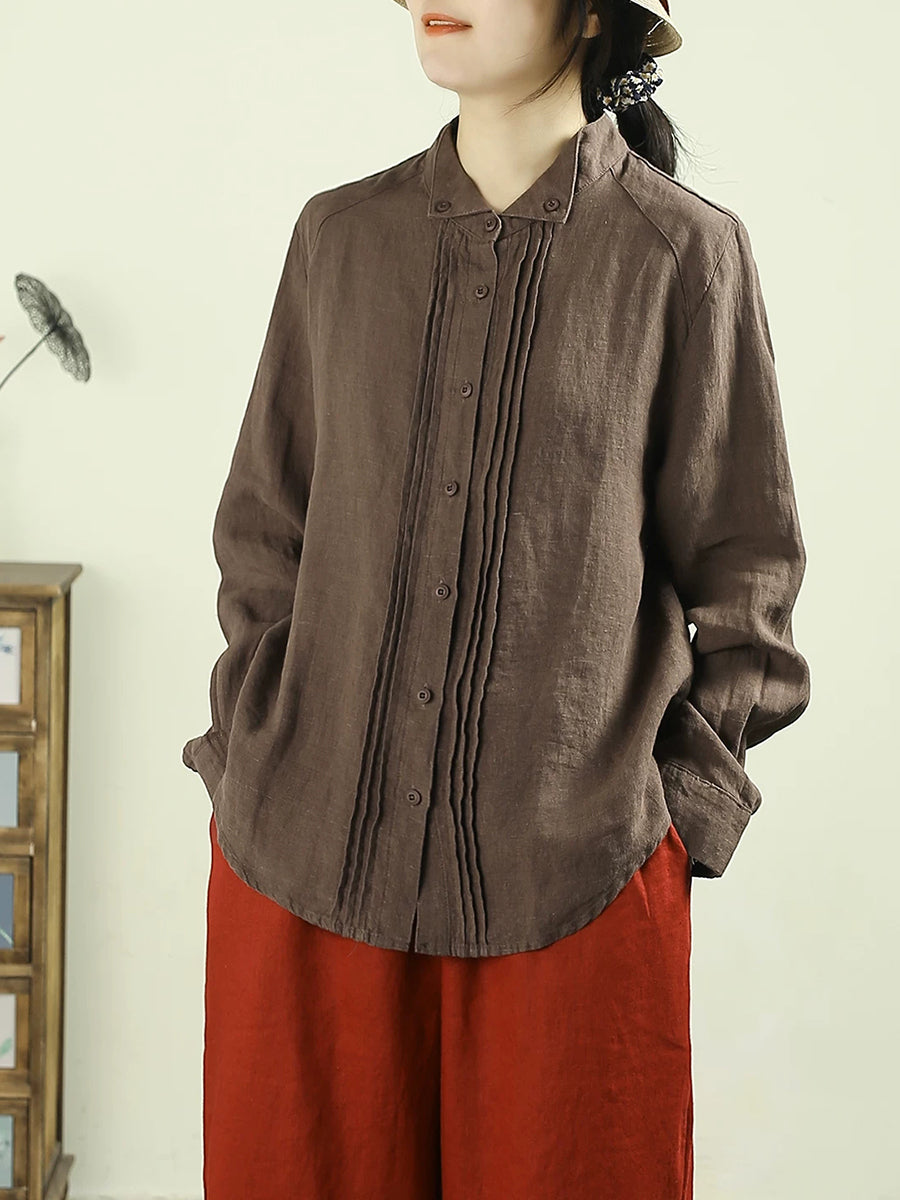Chemise printanière à fronces pour femme, couleur unie, 100 % lin