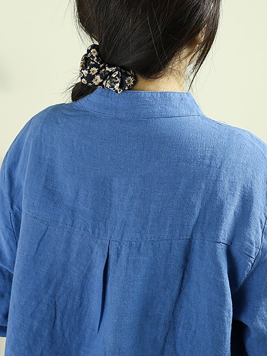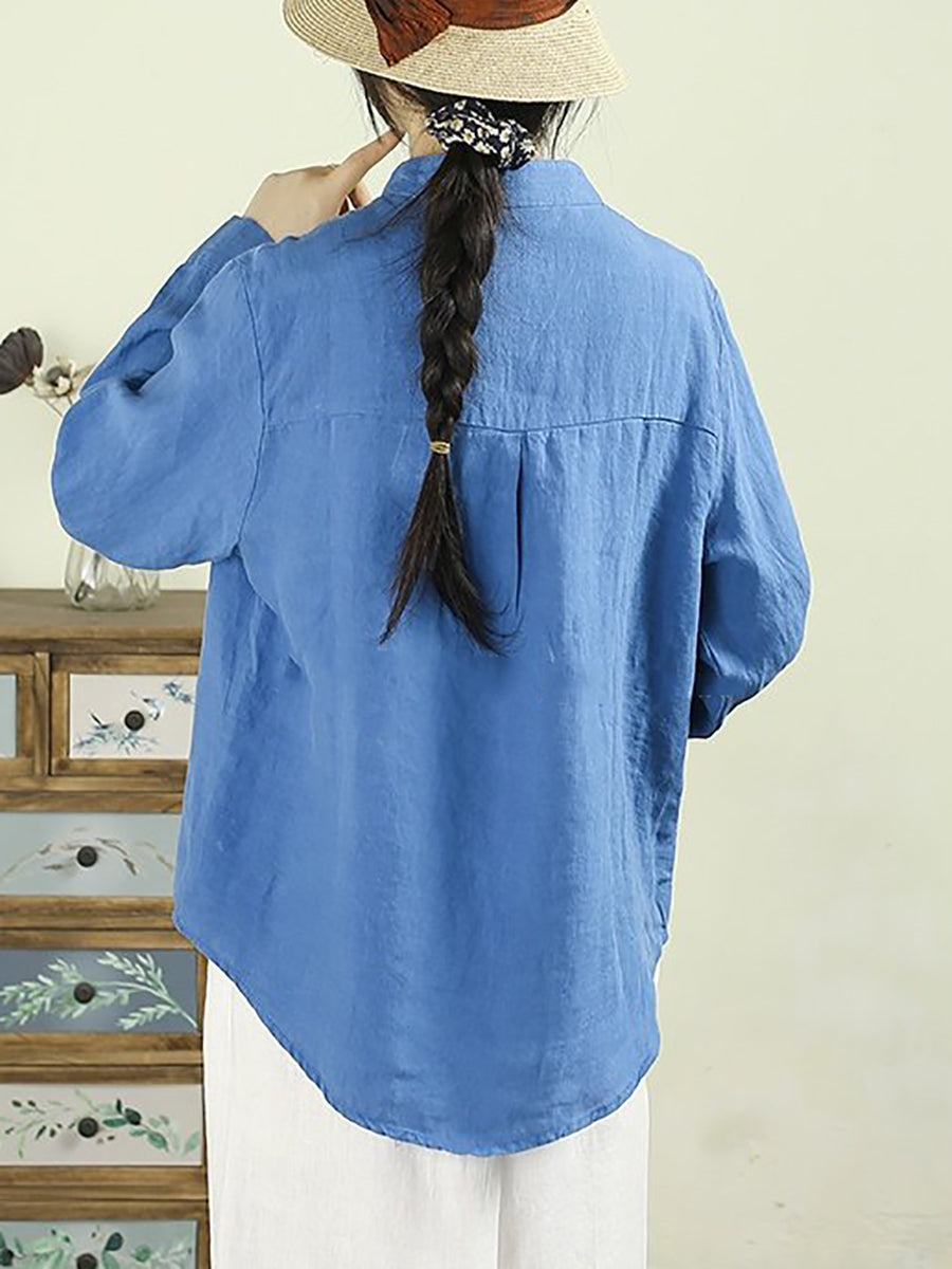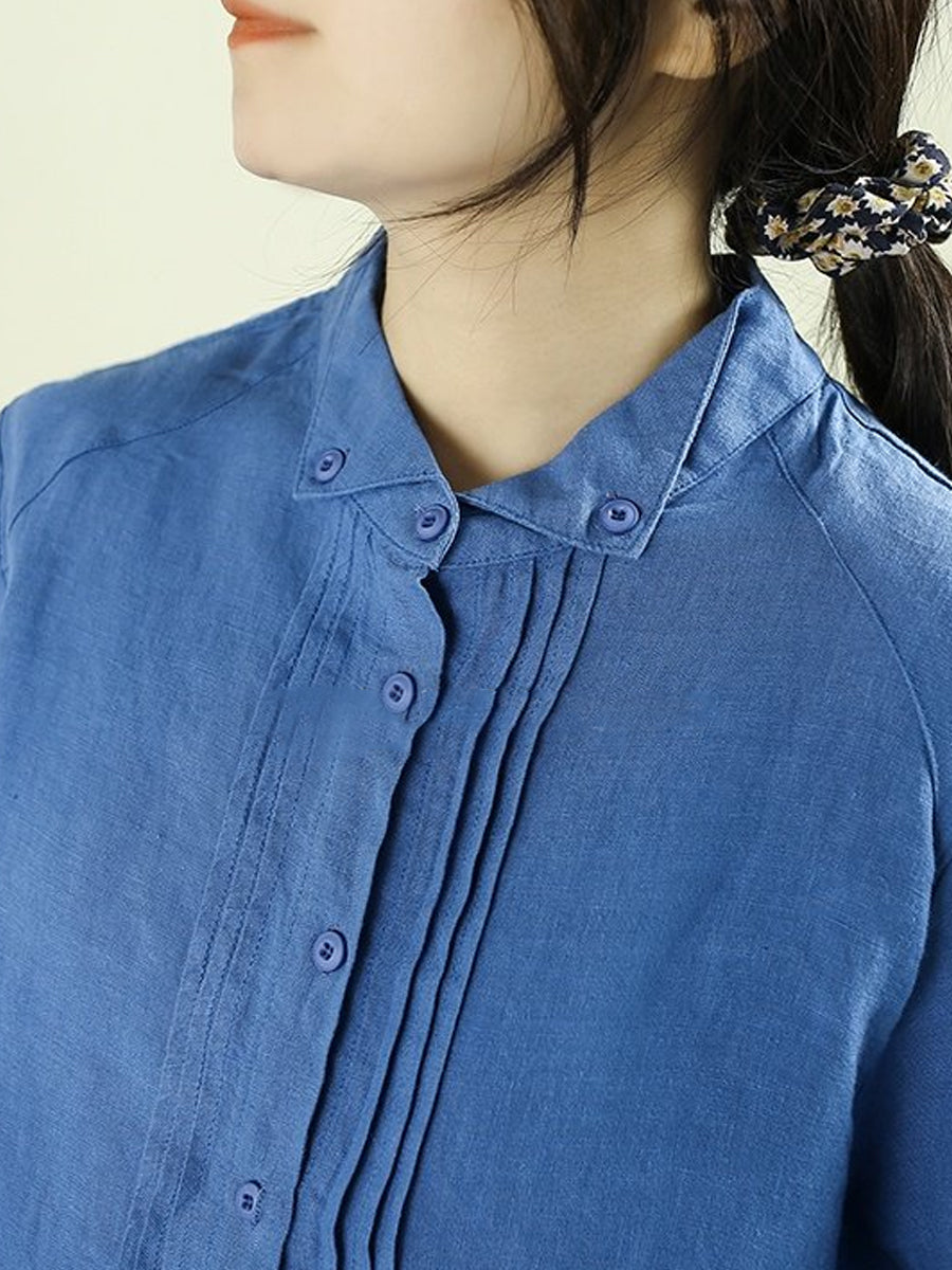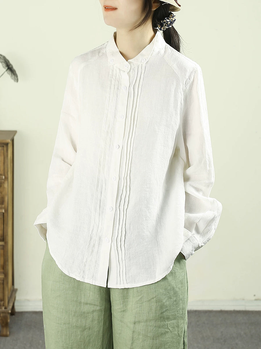 Chemise printanière à fronces pour femme, couleur unie, 100 % lin