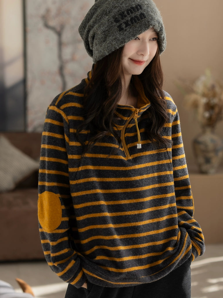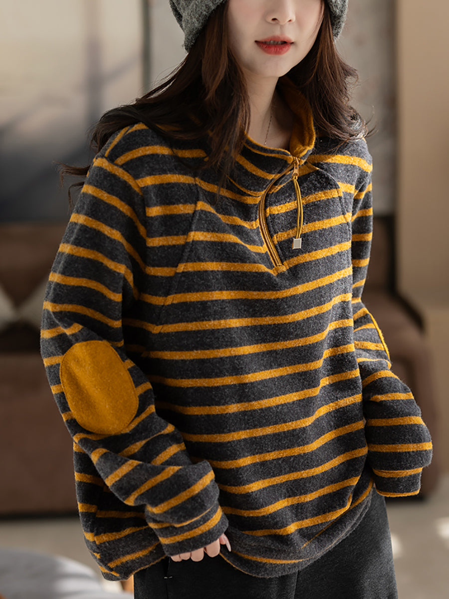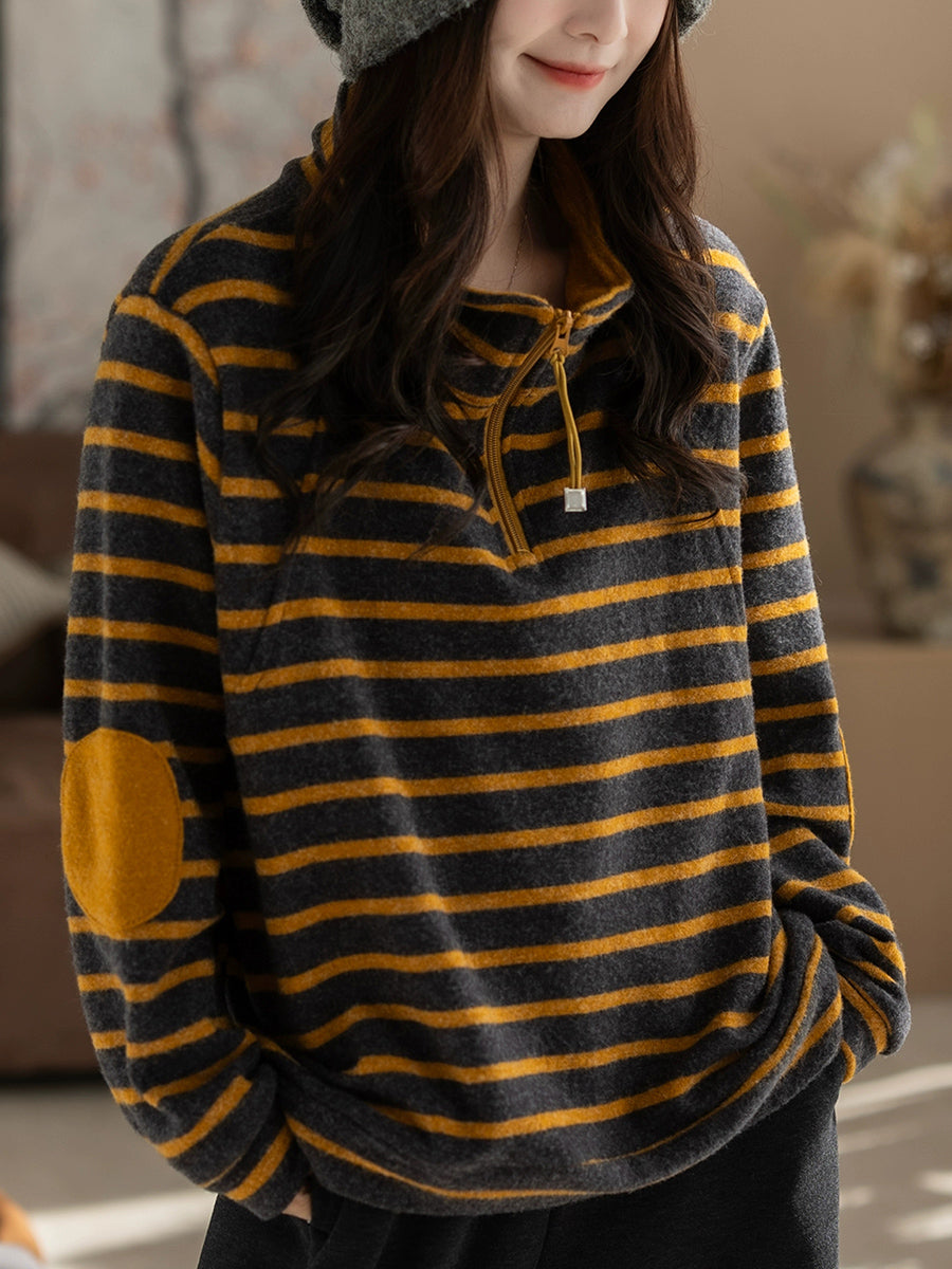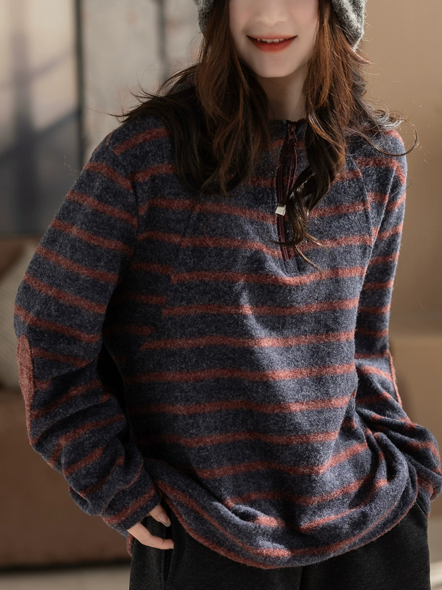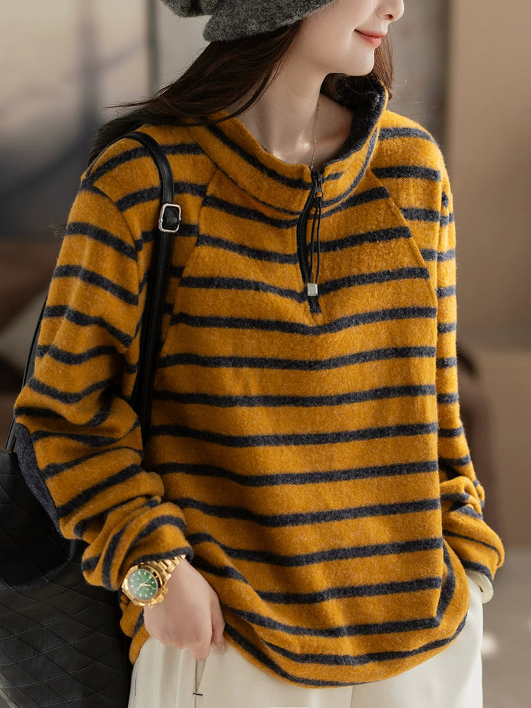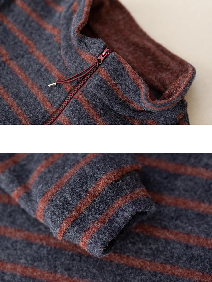 Chemisier vintage à rayures d'automne pour femme, col montant