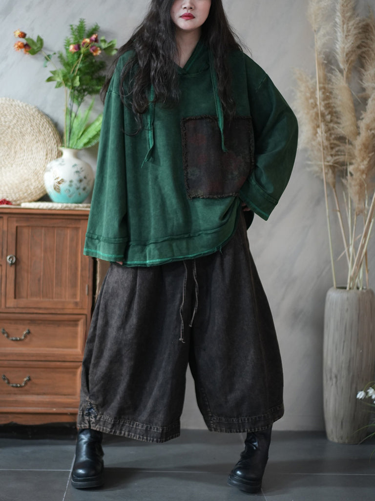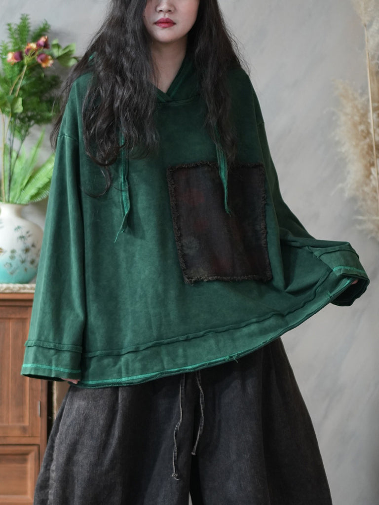 Blouse d'hiver rétro pour femme, col rond, bords francs et empiècements, style blouse à ourlet brut.