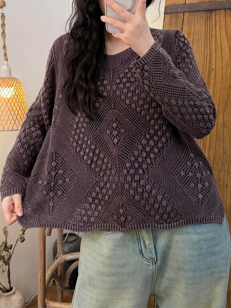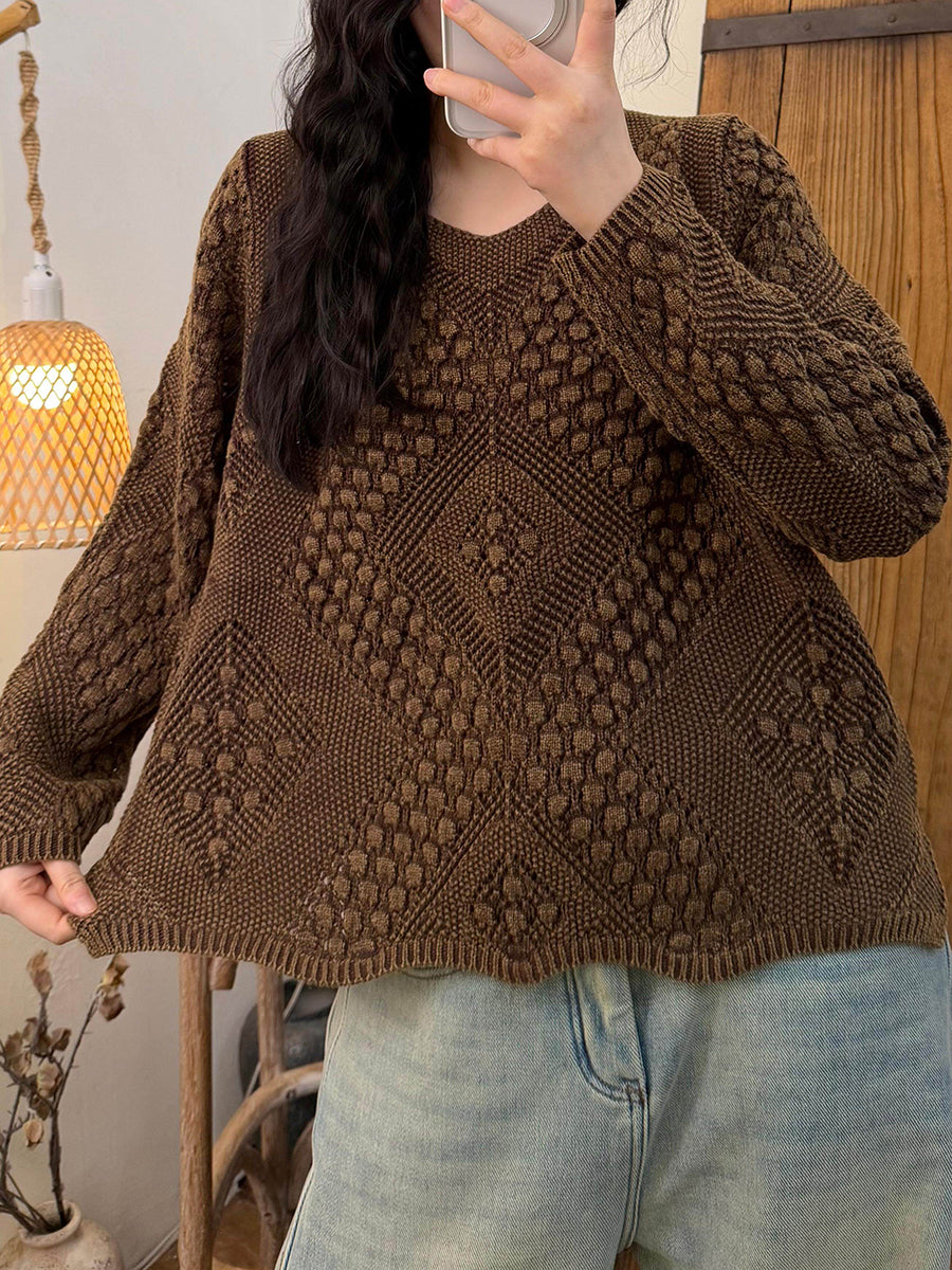 Pull rétro printanier à torsades pour femme, col en V