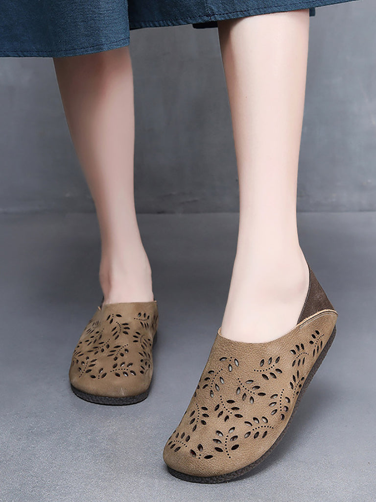 Chaussures plates vintage en cuir à fleurs pour femmes