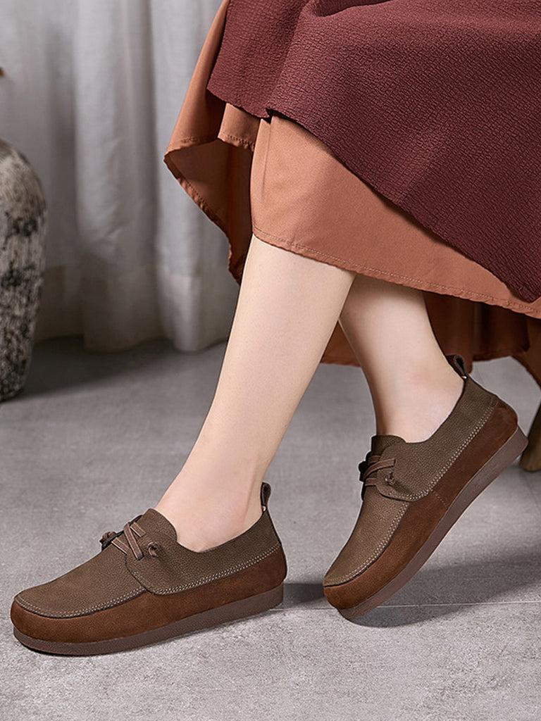 Chaussures plates vintage en cuir véritable pour femmes, colorblock