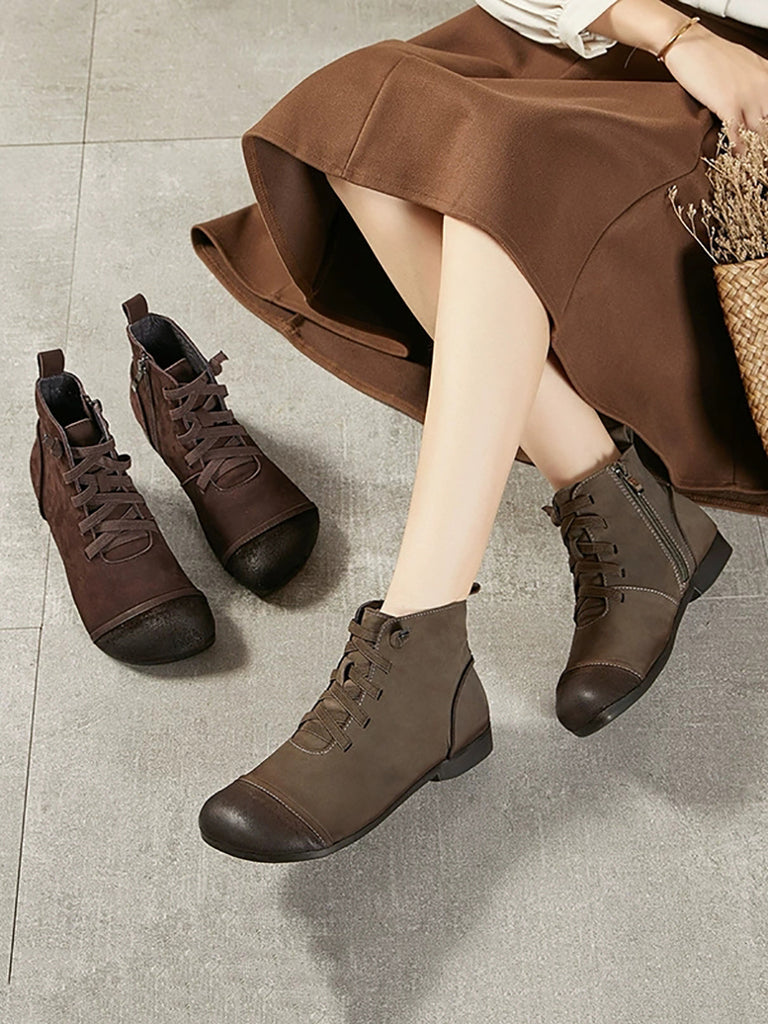 Bottines vintage en cuir véritable pour femme