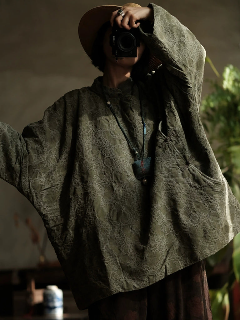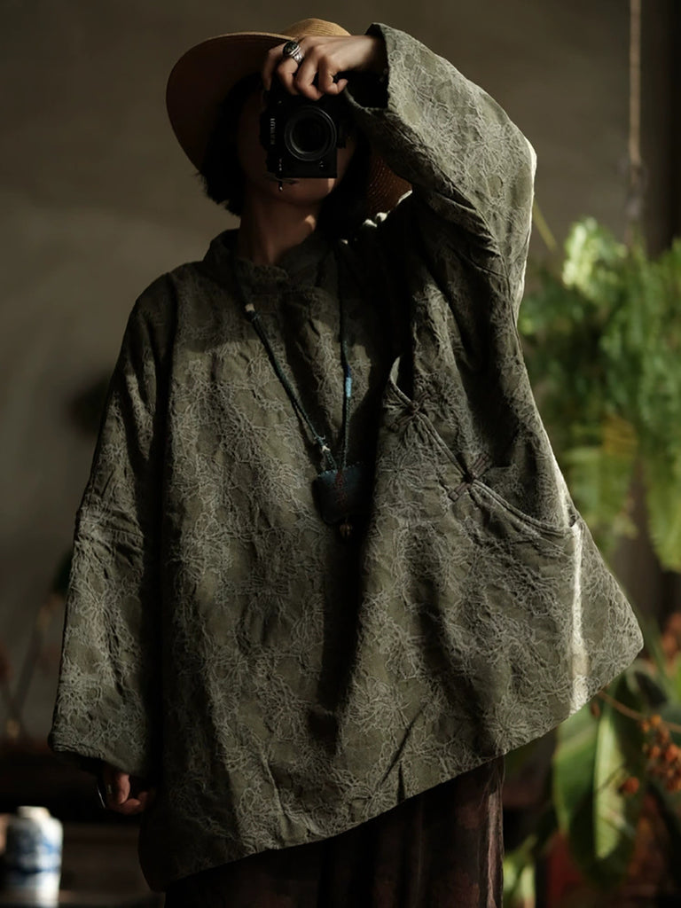 Chemise Ramie ample à boutons de fleurs de style national pour femmes