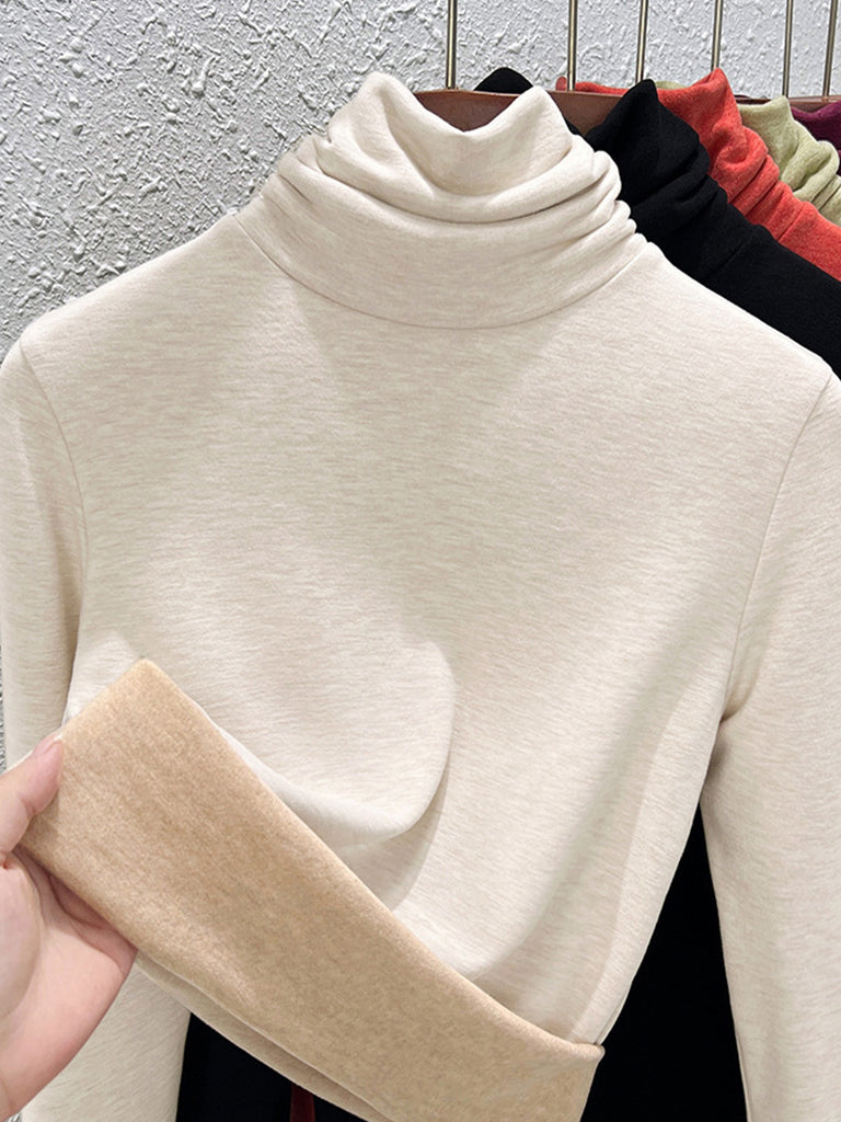Chemisier à col roulé uni pour femme, décontracté en hiver.