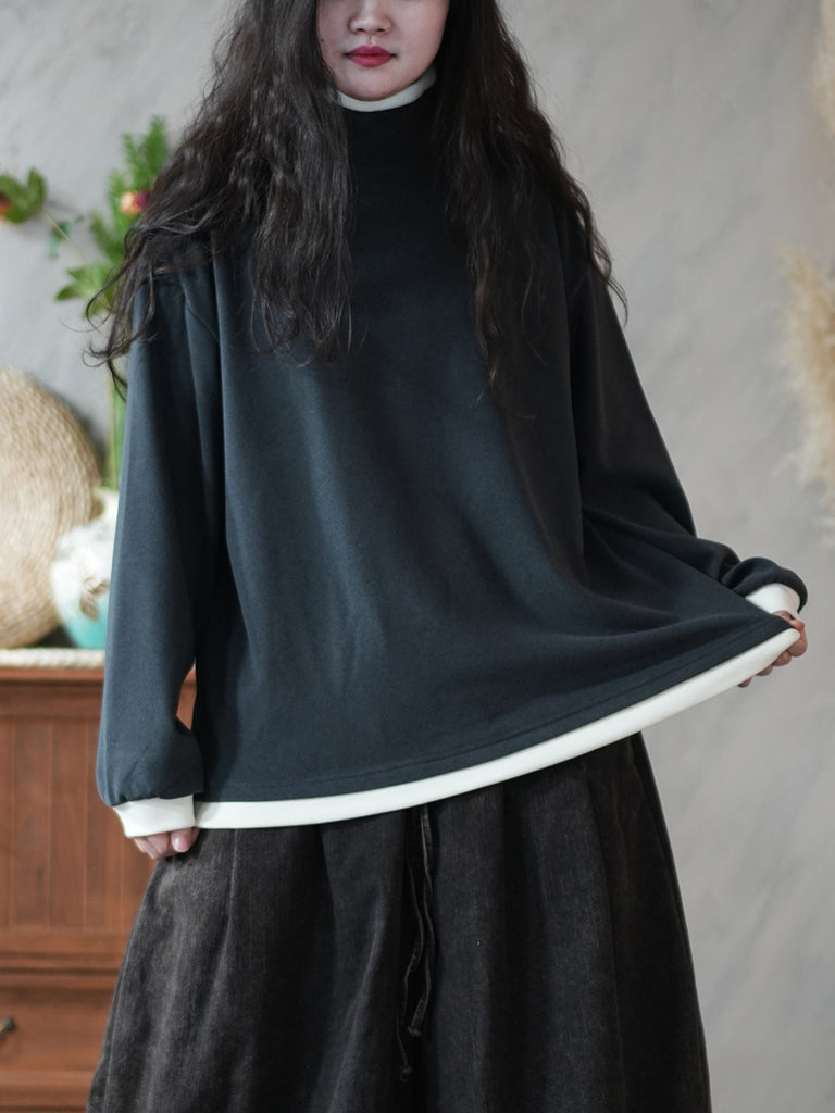 Sweat-shirt en polaire à col roulé épissé pour femme, décontracté, hiver