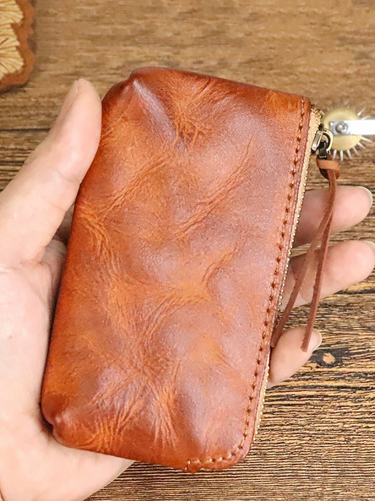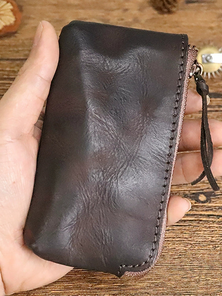 Portefeuille zippé vintage en cuir véritable pour femme