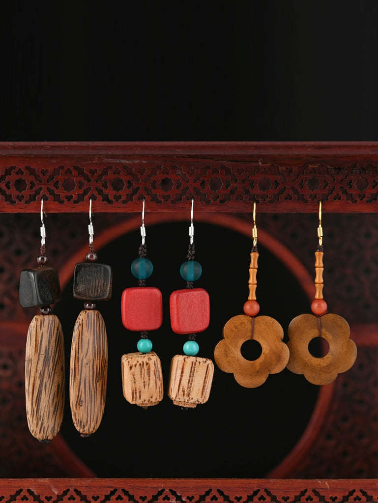 Boucles d'oreilles vintage en bois et fleurs pour femmes